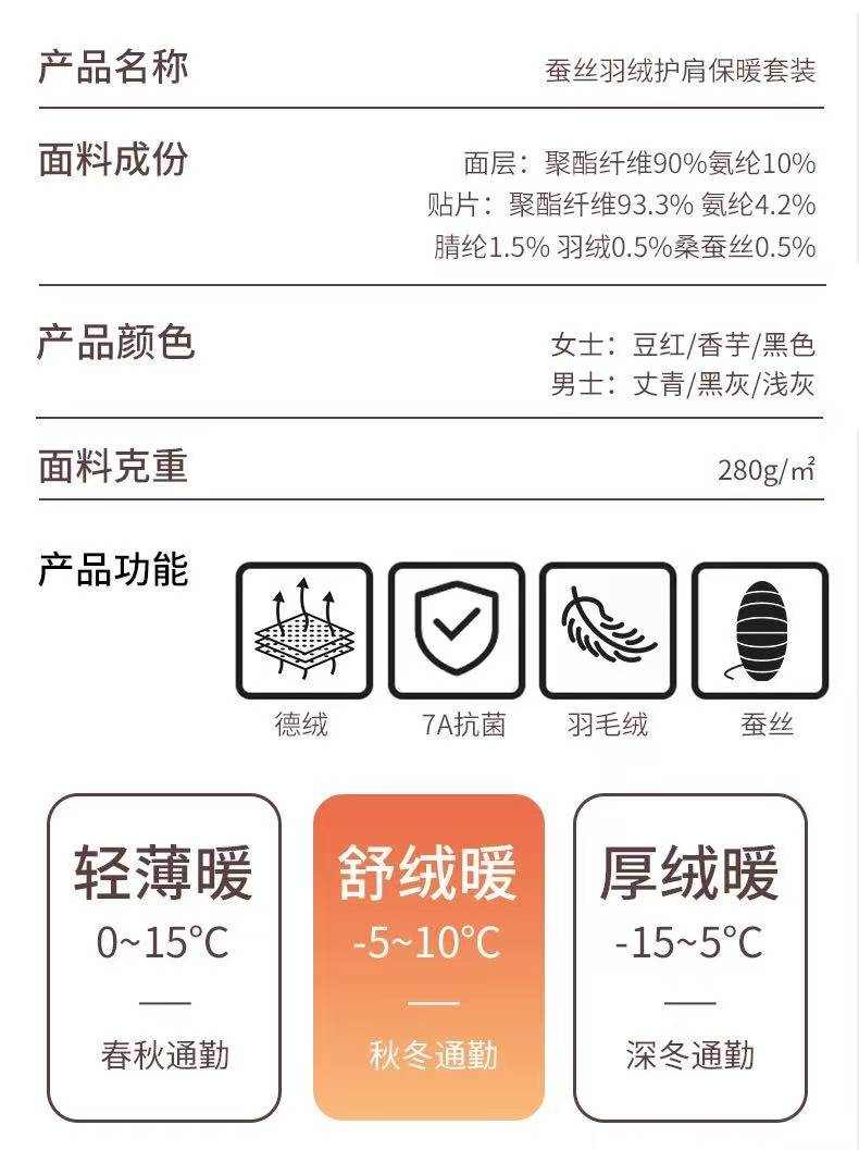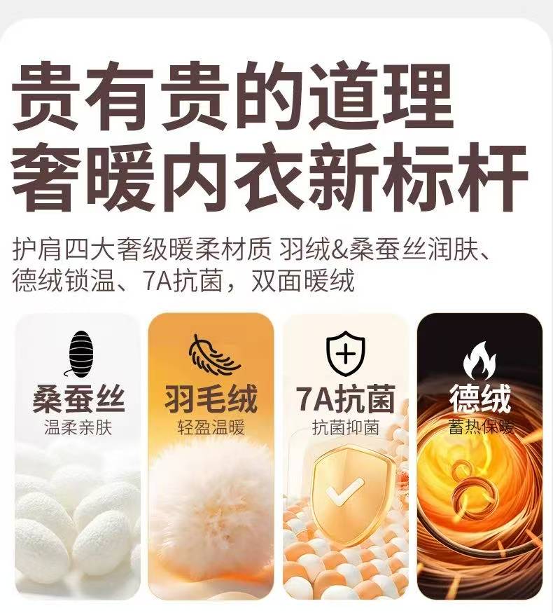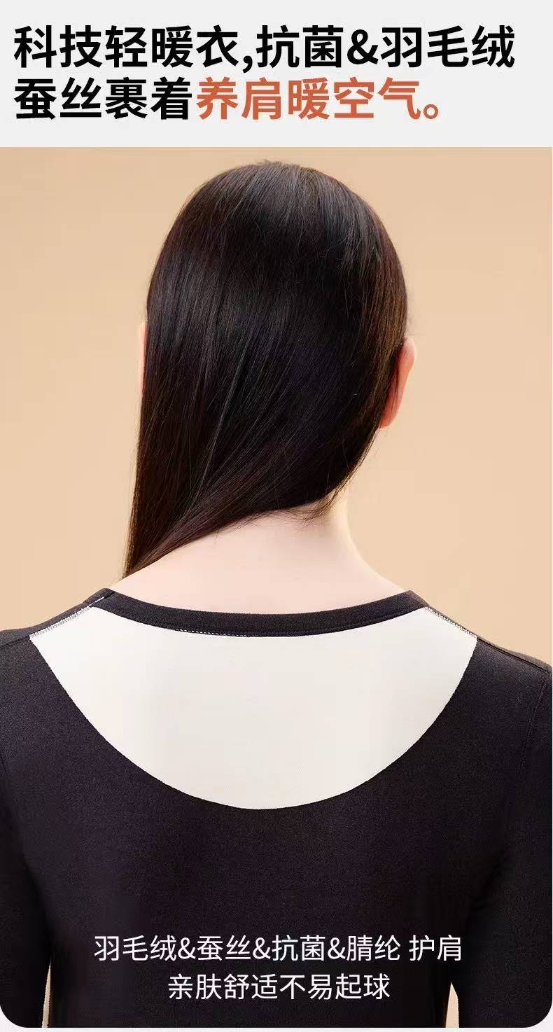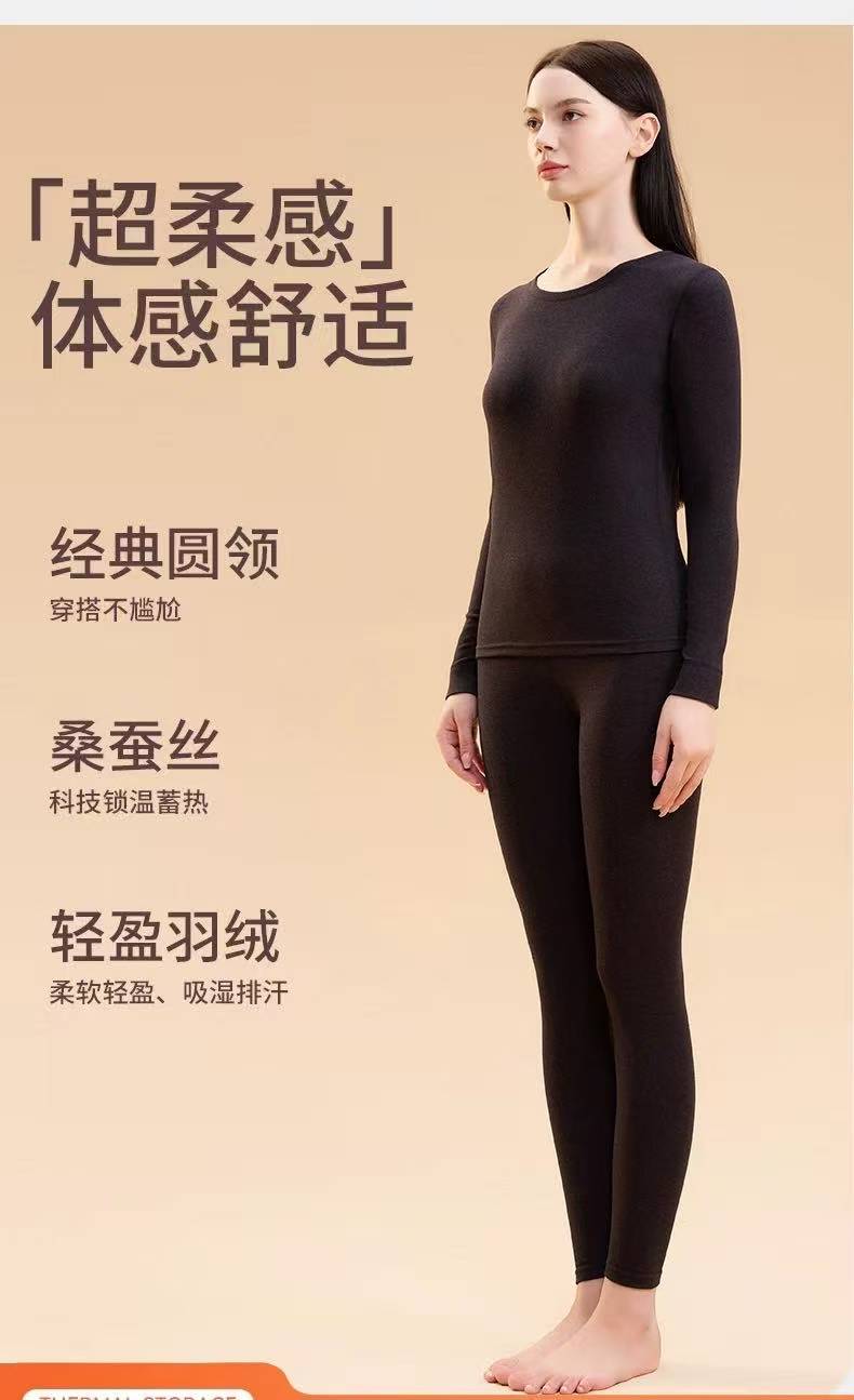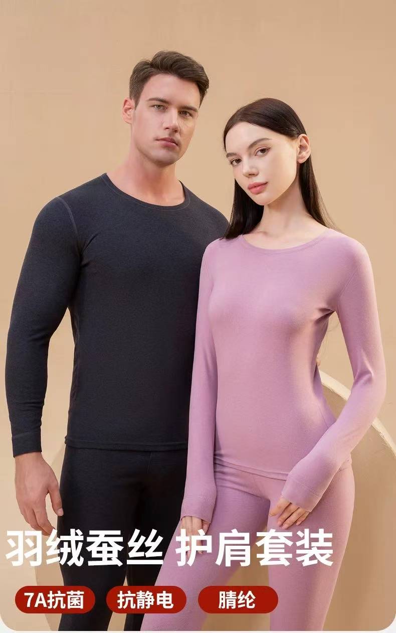 雪中飞羽绒+桑蚕丝+7A抗jun男女贴片保暖内衣套装 轻便透气 高弹自发热 270g