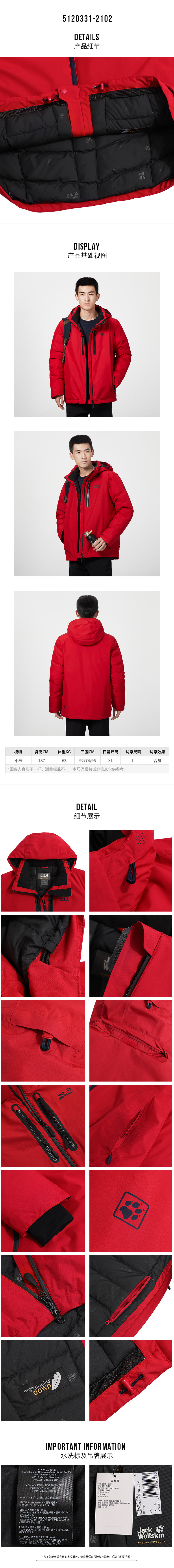 Jack wolfskin狼爪男装 2021秋冬新款运动服户外出行保暖连帽羽绒服外套5120331-2102