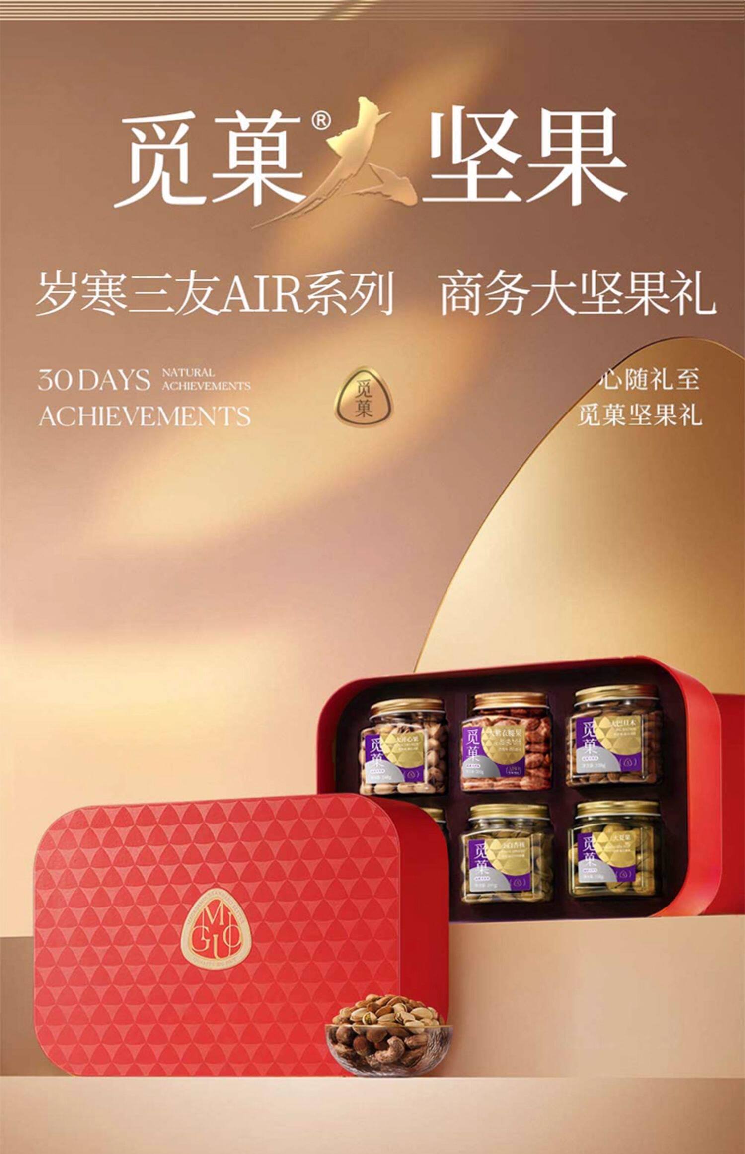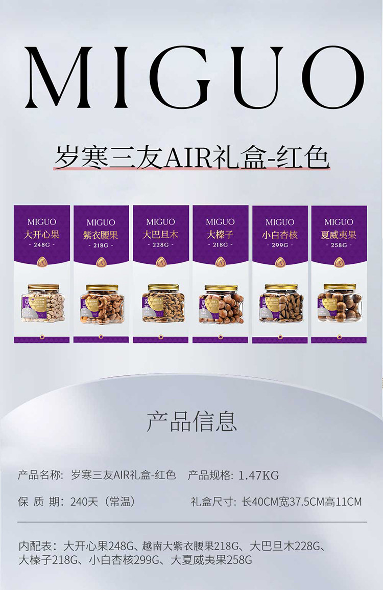 【新品上新】觅菓岁寒三友红色坚果礼盒AIR系列升级款-1.47kg/152963 红色款高档商务送礼
