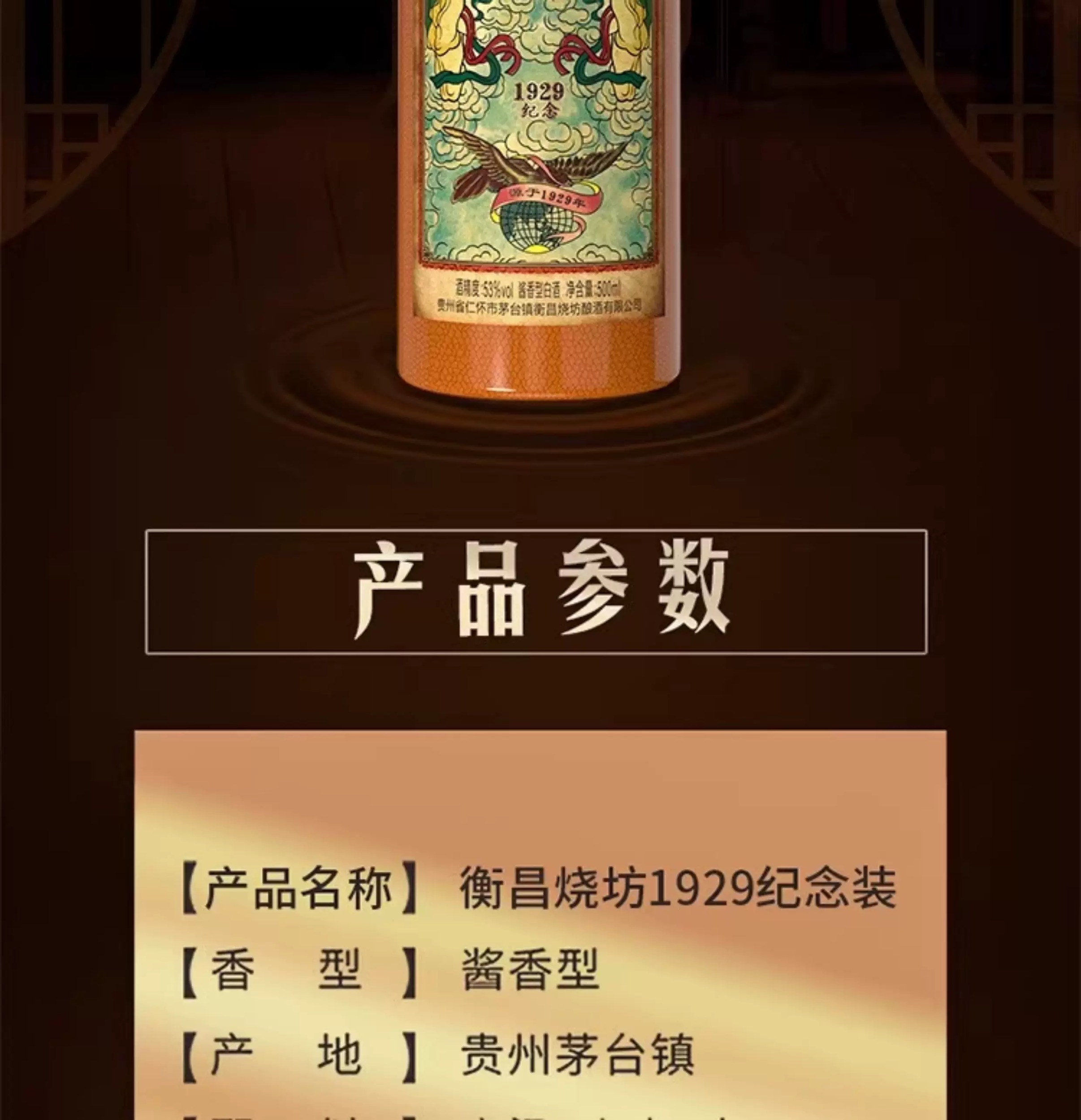 53度衡昌烧坊1929纪念版酱香型白酒2021年老酒