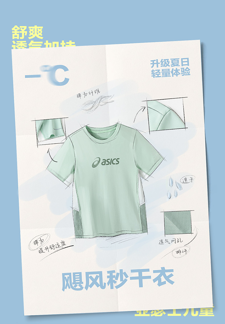 ASICS/亚瑟士童装25年夏季新款男女童运动吸湿透气T恤飓风秒干衣