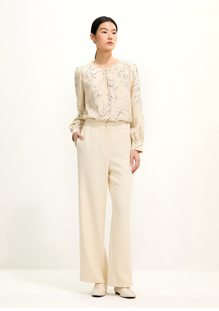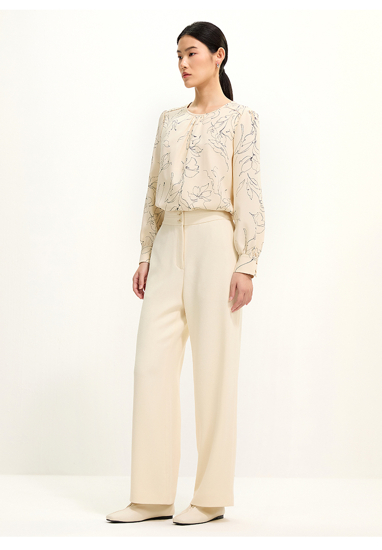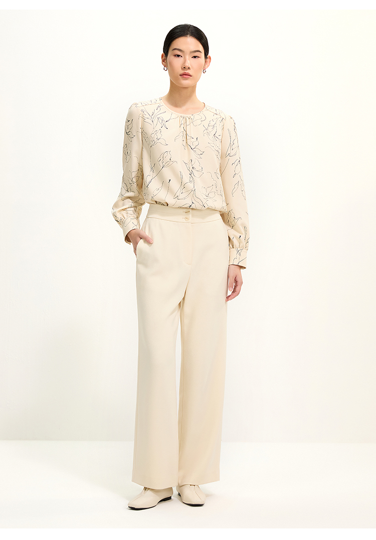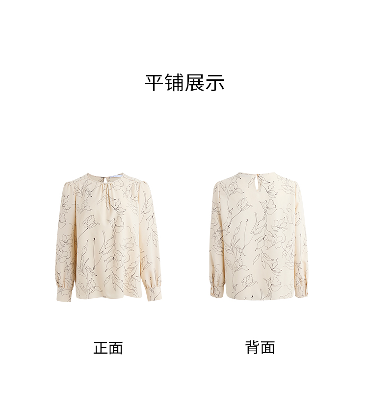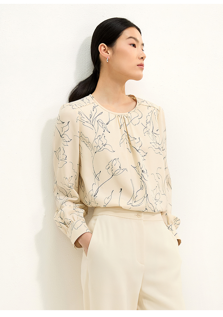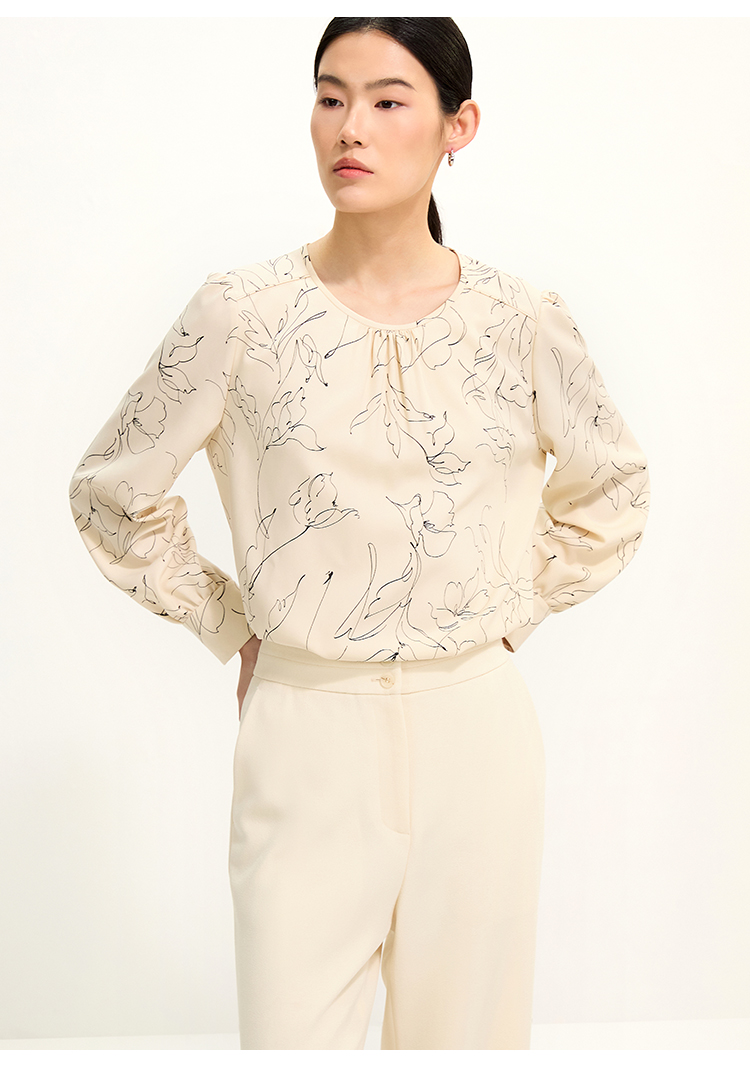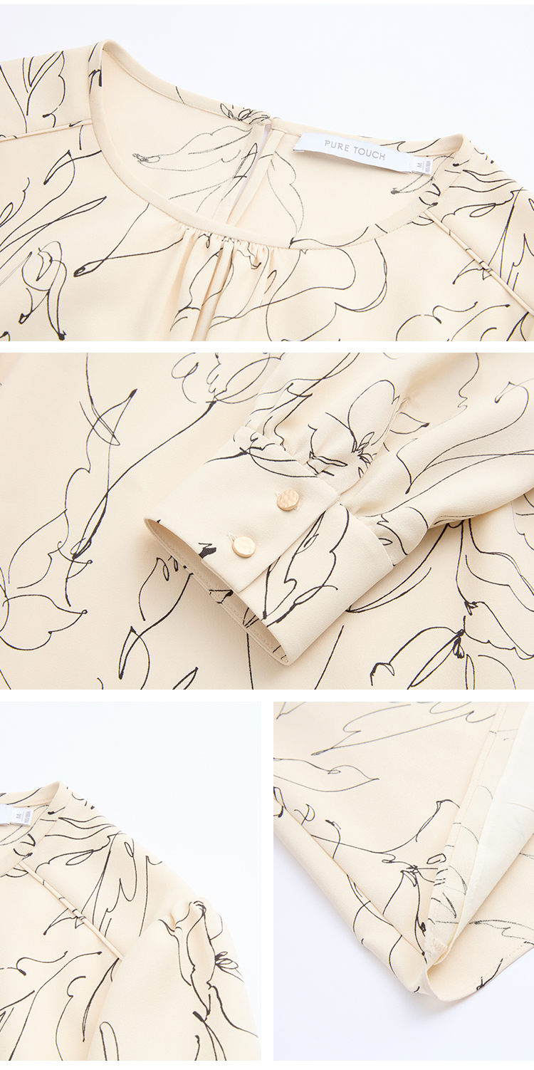 pure touch圆领简约印花女士长袖衬衫1301251004