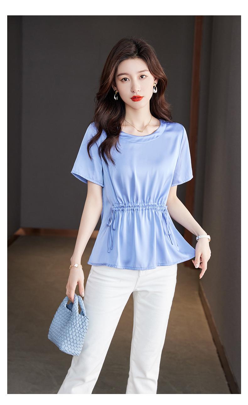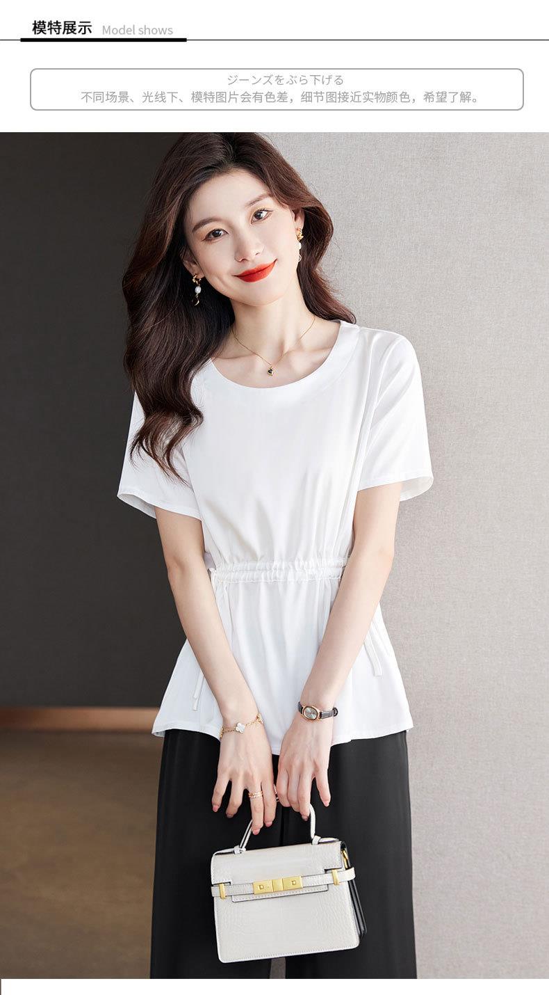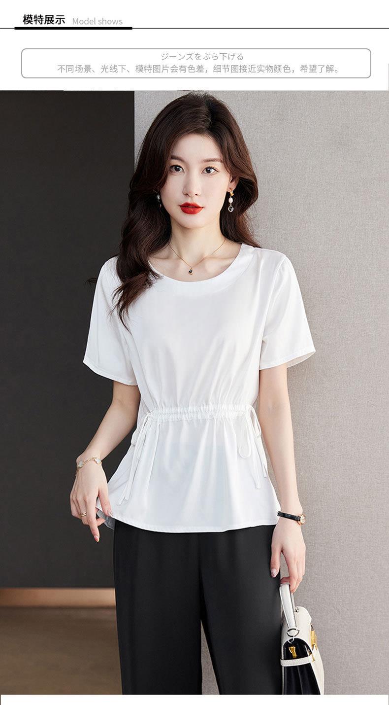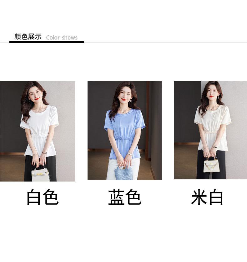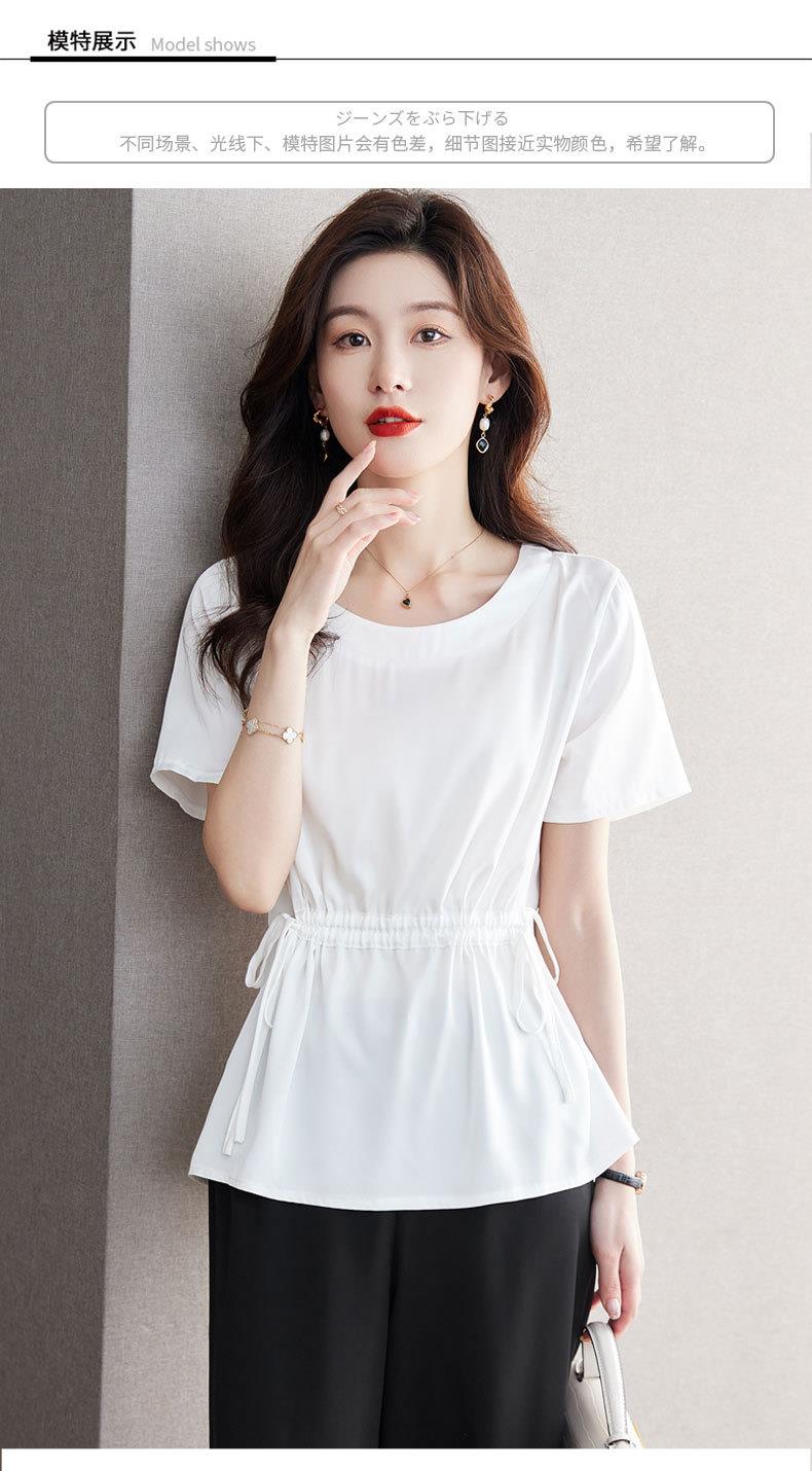 2023夏季新款雪纺衫短袖衬衫女宽松大码T恤圆领小衫5001