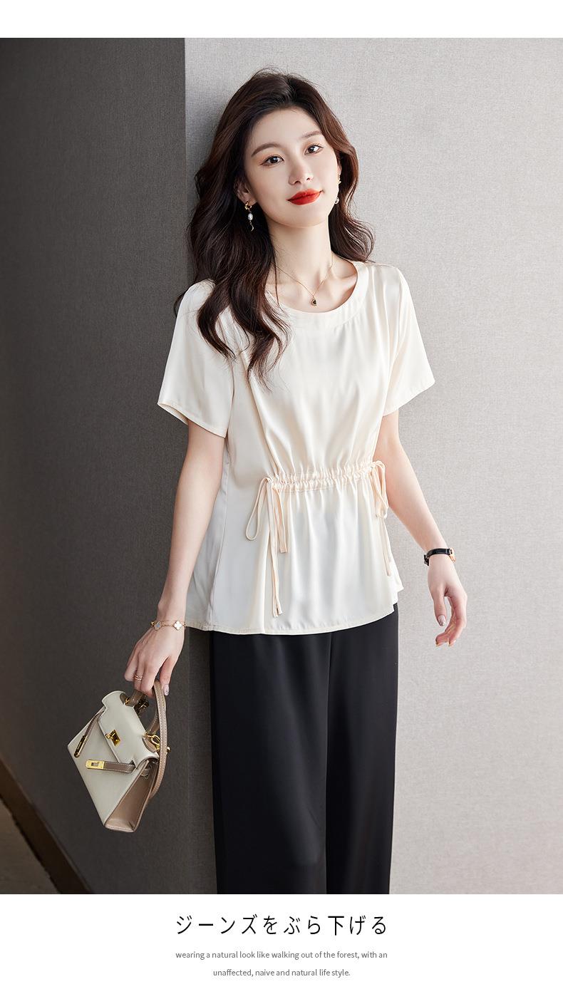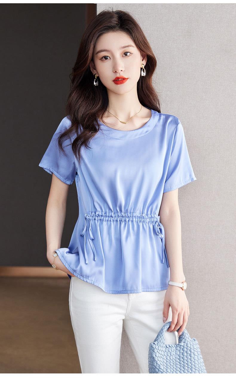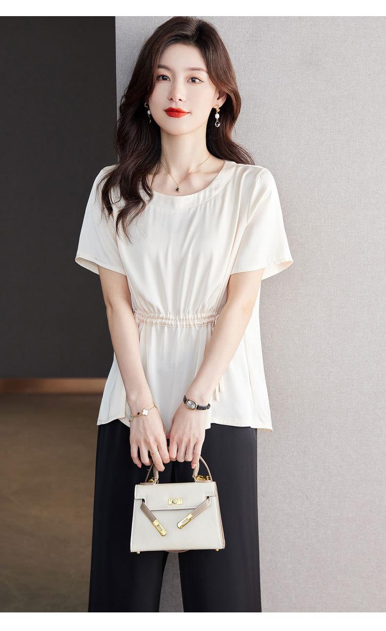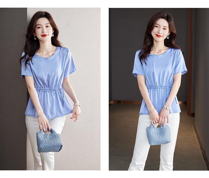 2023夏季新款雪纺衫短袖衬衫女宽松大码T恤圆领小衫5001