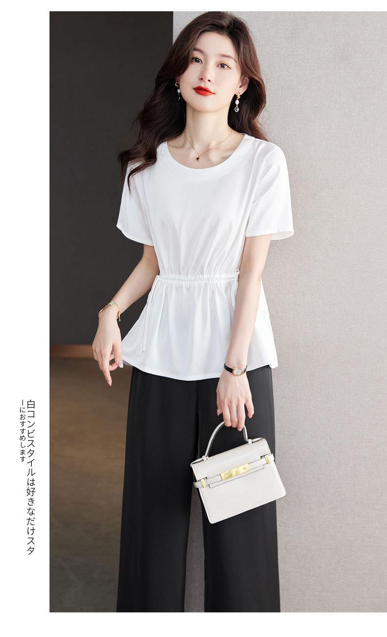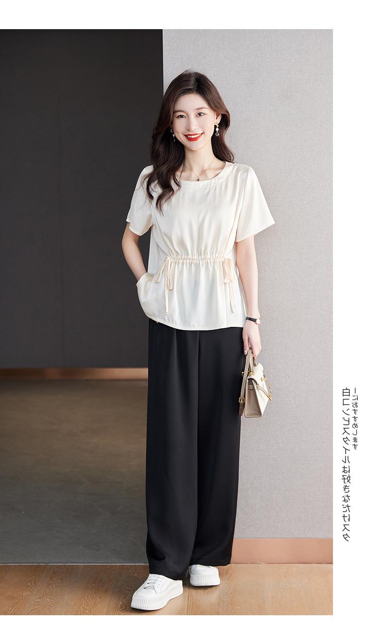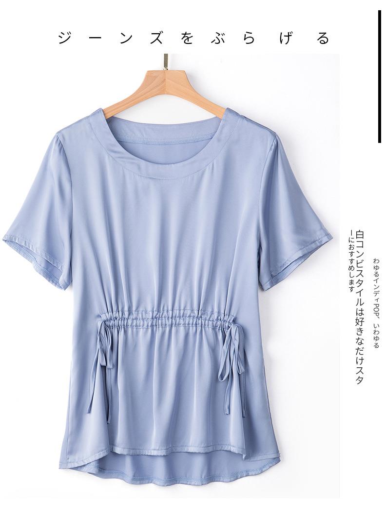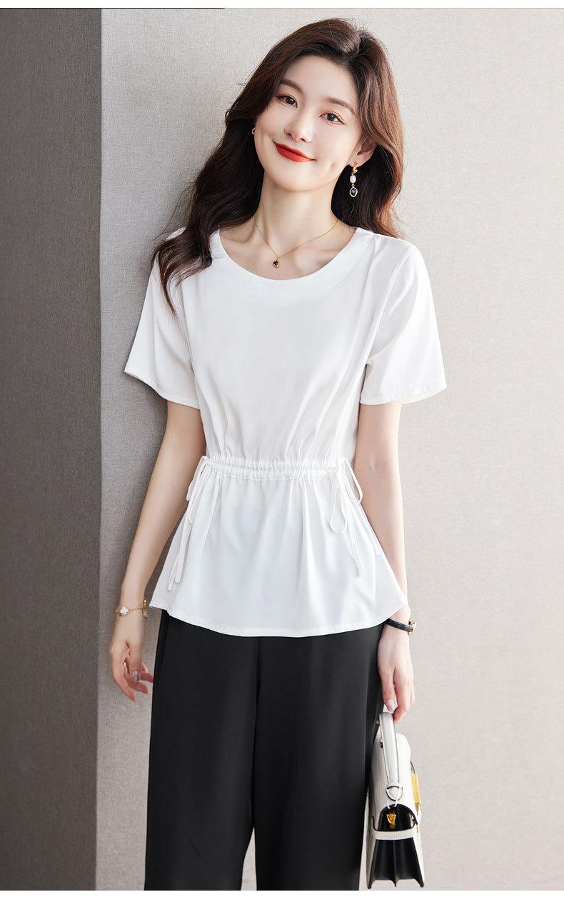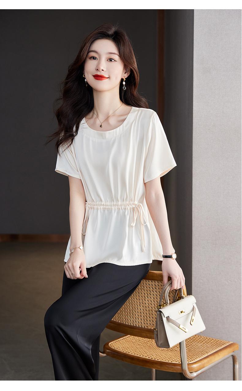 2023夏季新款雪纺衫短袖衬衫女宽松大码T恤圆领小衫5001