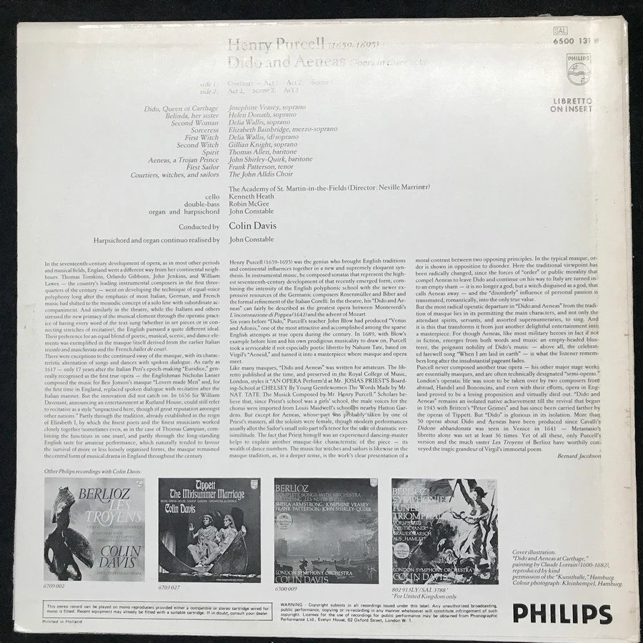 LP黑胶唱片 普赛尔《狄多与埃涅阿斯》 圣马丁室内乐团录制