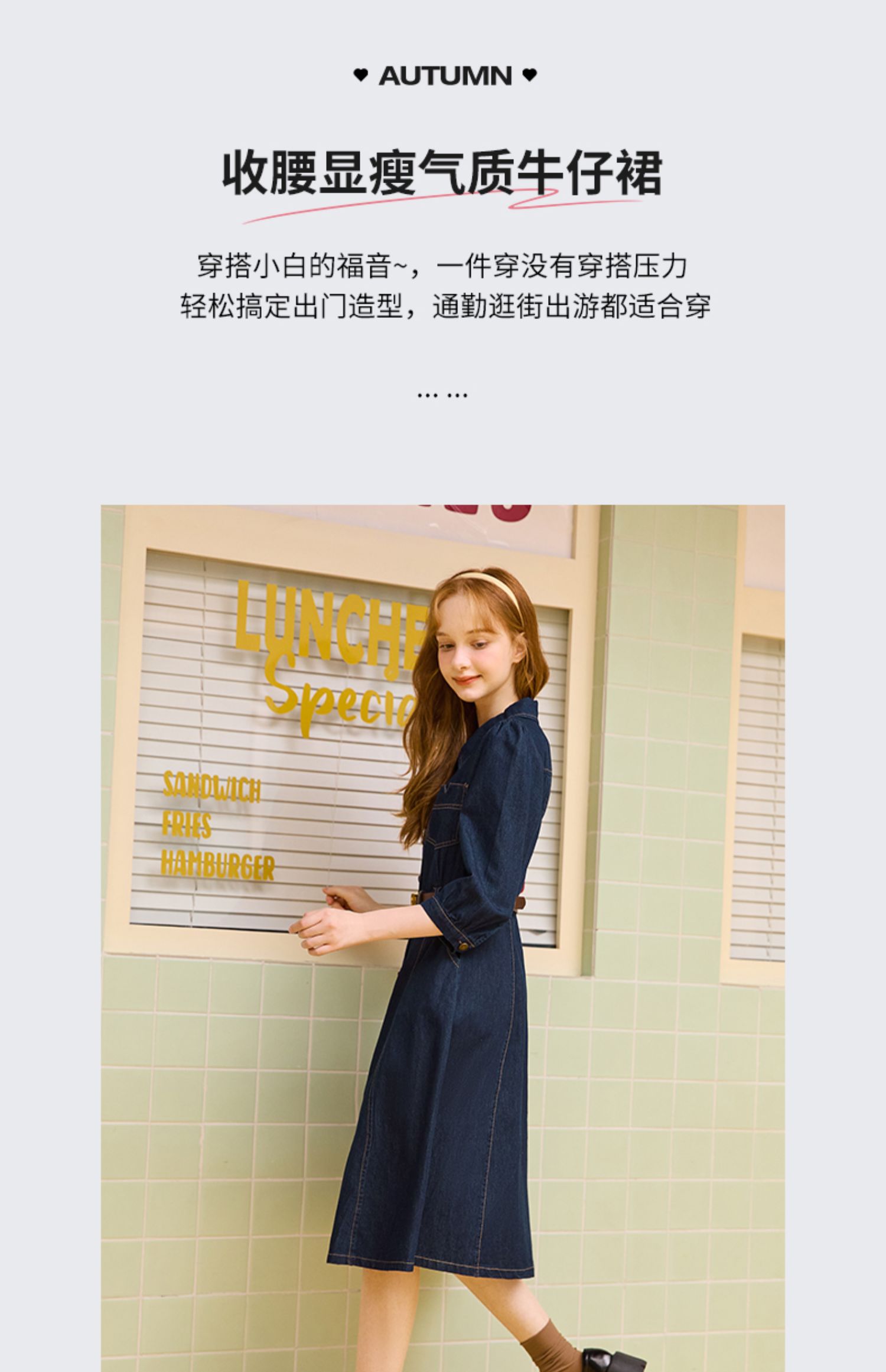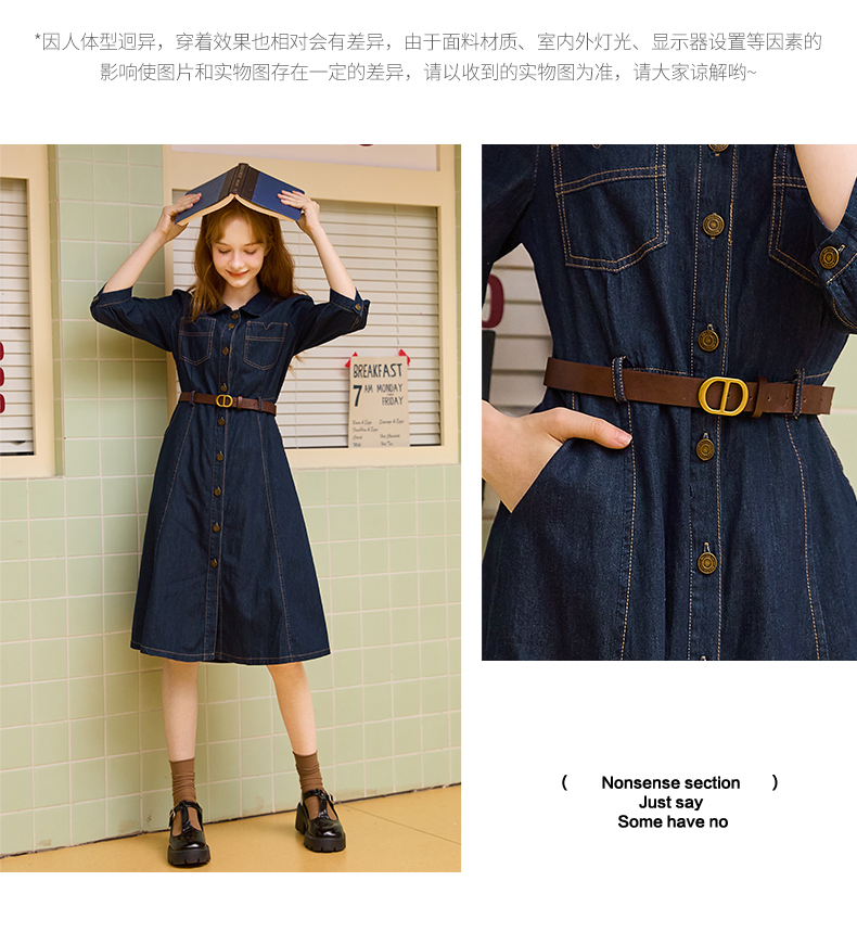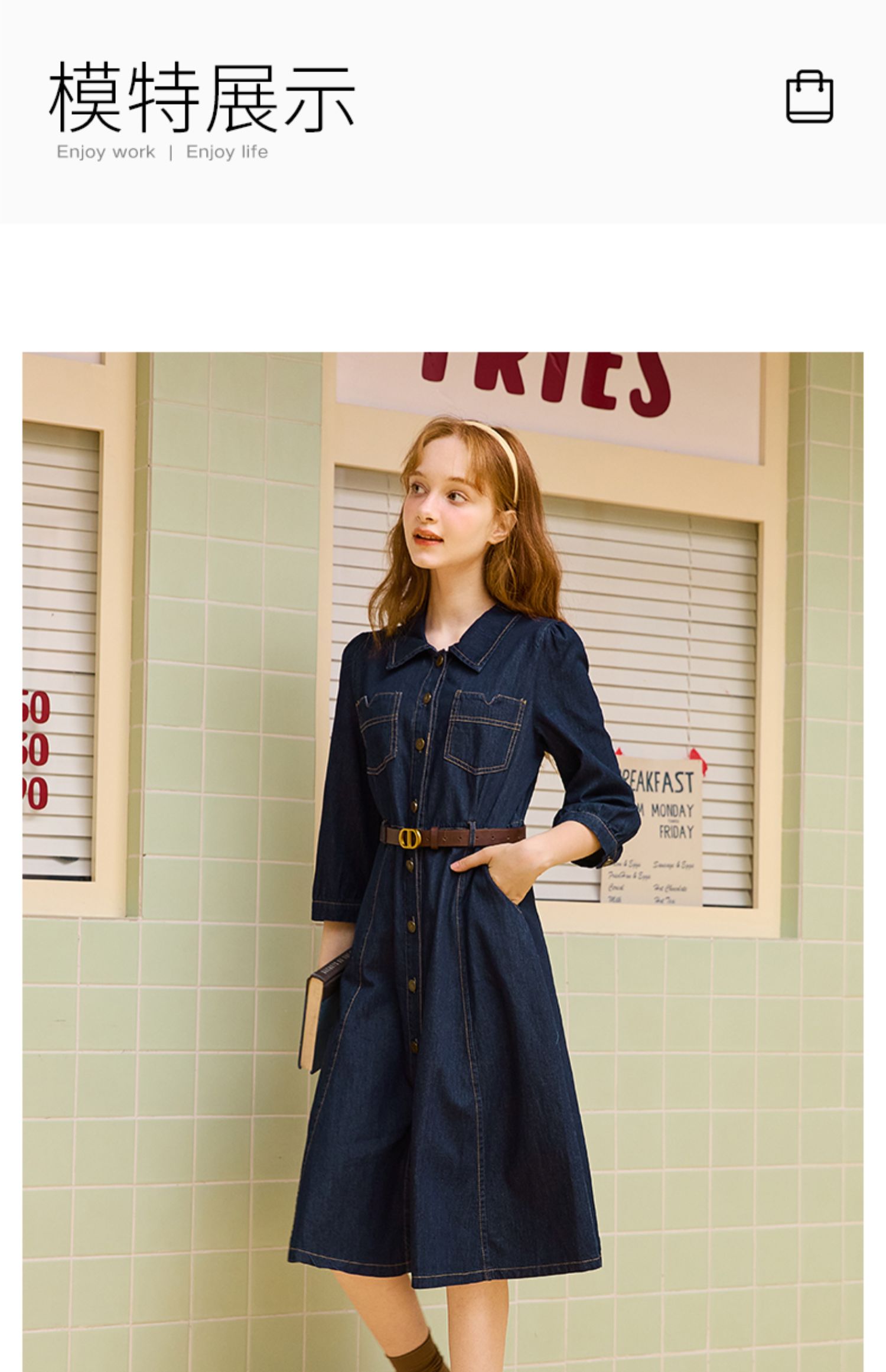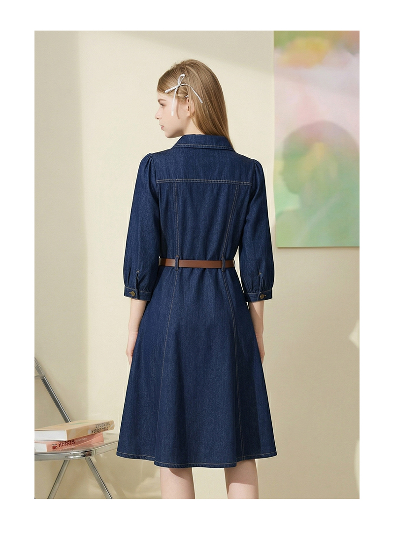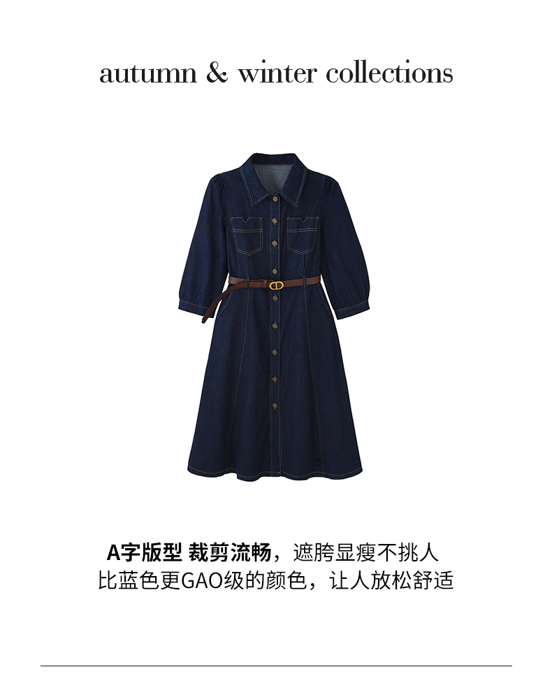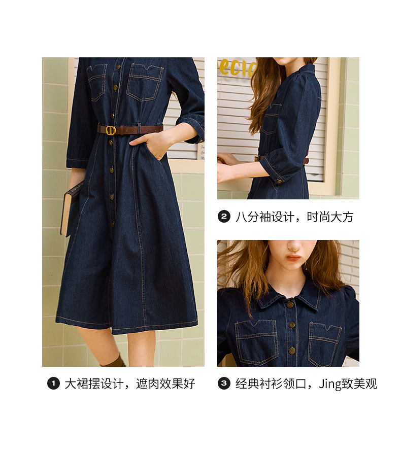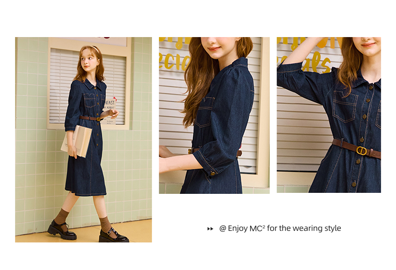 mc2牛仔连衣裙女秋2023年春装新款气质显瘦八分袖a字翻领牛仔裙