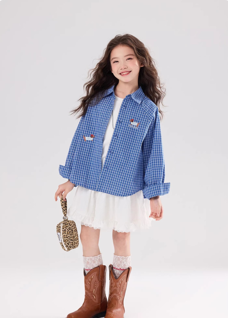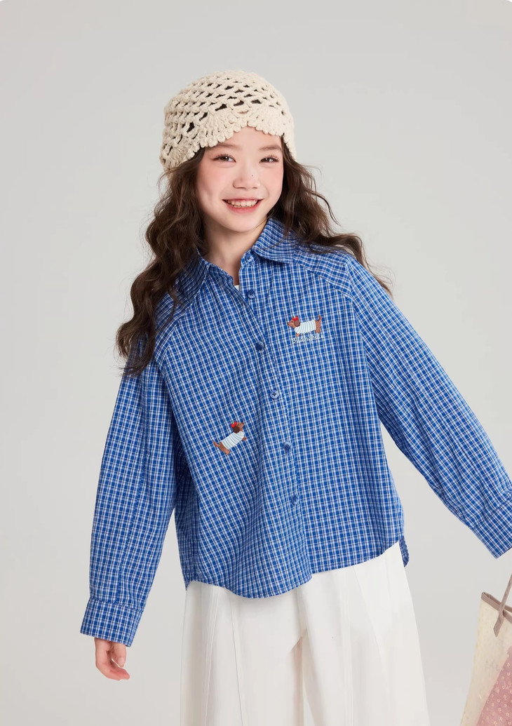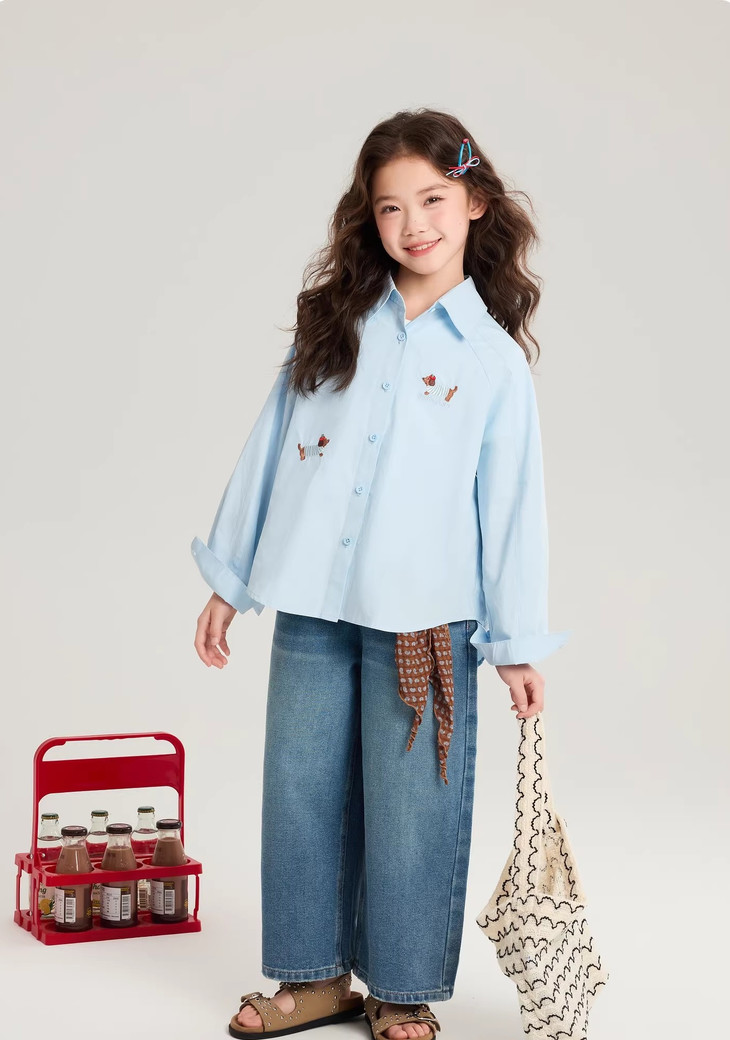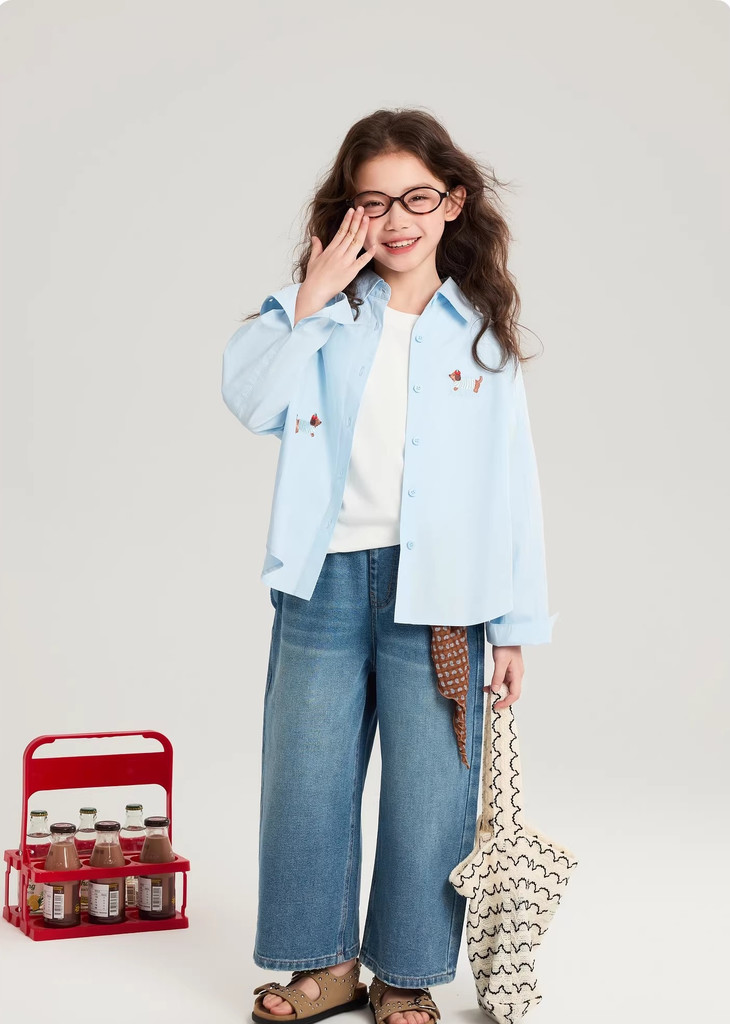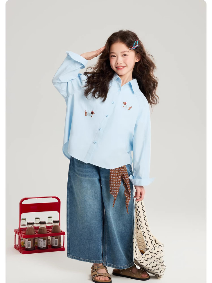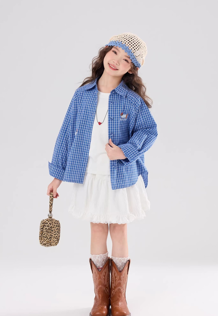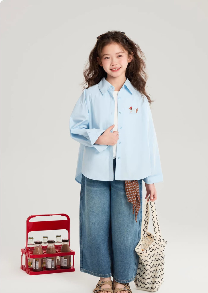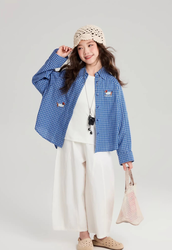 下面再来看这一组超能搭的万能衬衫 20度的天气穿什么衣服❓超喜欢带图案的衬衫 春天的第一件衬衫必须是它🙌 妥妥万金油单品✨时髦拿捏不费力时髦❗ 这款纯色+格纹真的超级超级经典 MiU色系😘 可盐可甜,胖瘦女宝都可以驾驭! 🛑面料采用100%棉,手感厚实柔软亲肤,超级好穿! 软fufu的奶蓝色衬衫,像把春天穿在身上~ 细腻的棉感透气不闷,宽松版型对各种身材都超友好。 小面积的刺绣点缀,让基础款多了几分俏皮可爱,单穿叠穿都好看。 搭配短裙,休闲裤,慵懒氛围感直接拉满! 跑跳玩耍都无束缚,给整套穿搭注入满满的活力感。