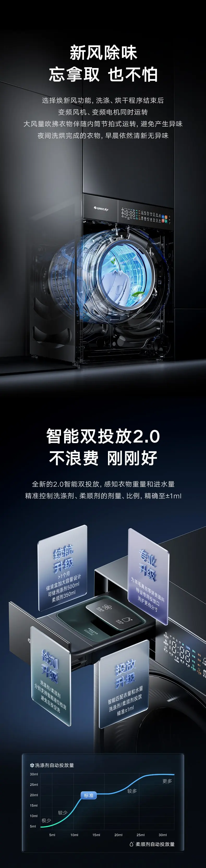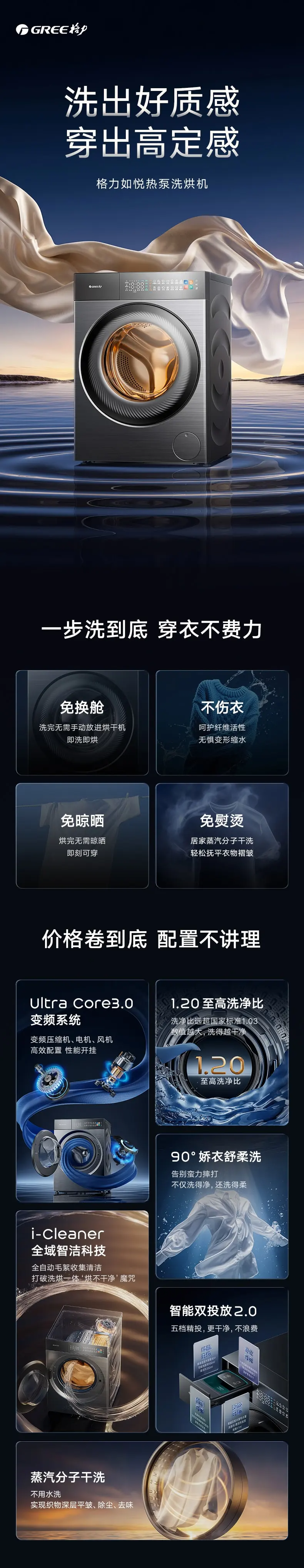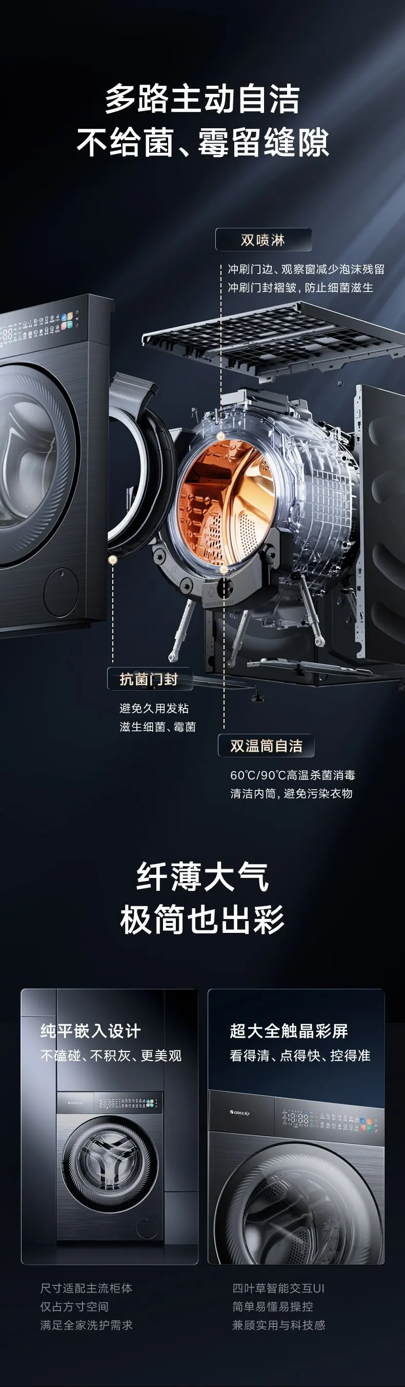 格力·如悦热泵洗烘一体机 洗衣机10kg XQG100-RBKD1401Ad1 (珍珠黑)