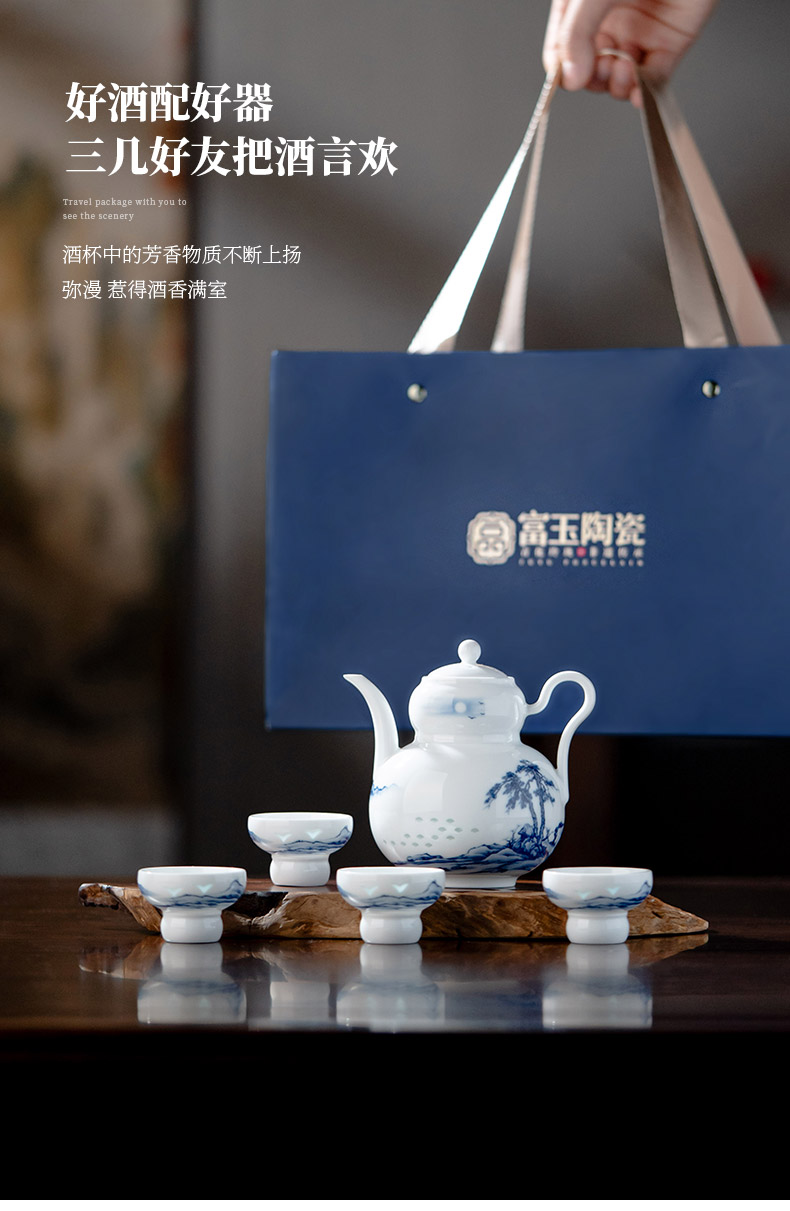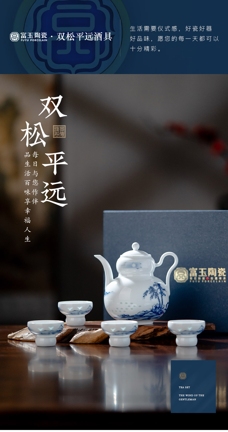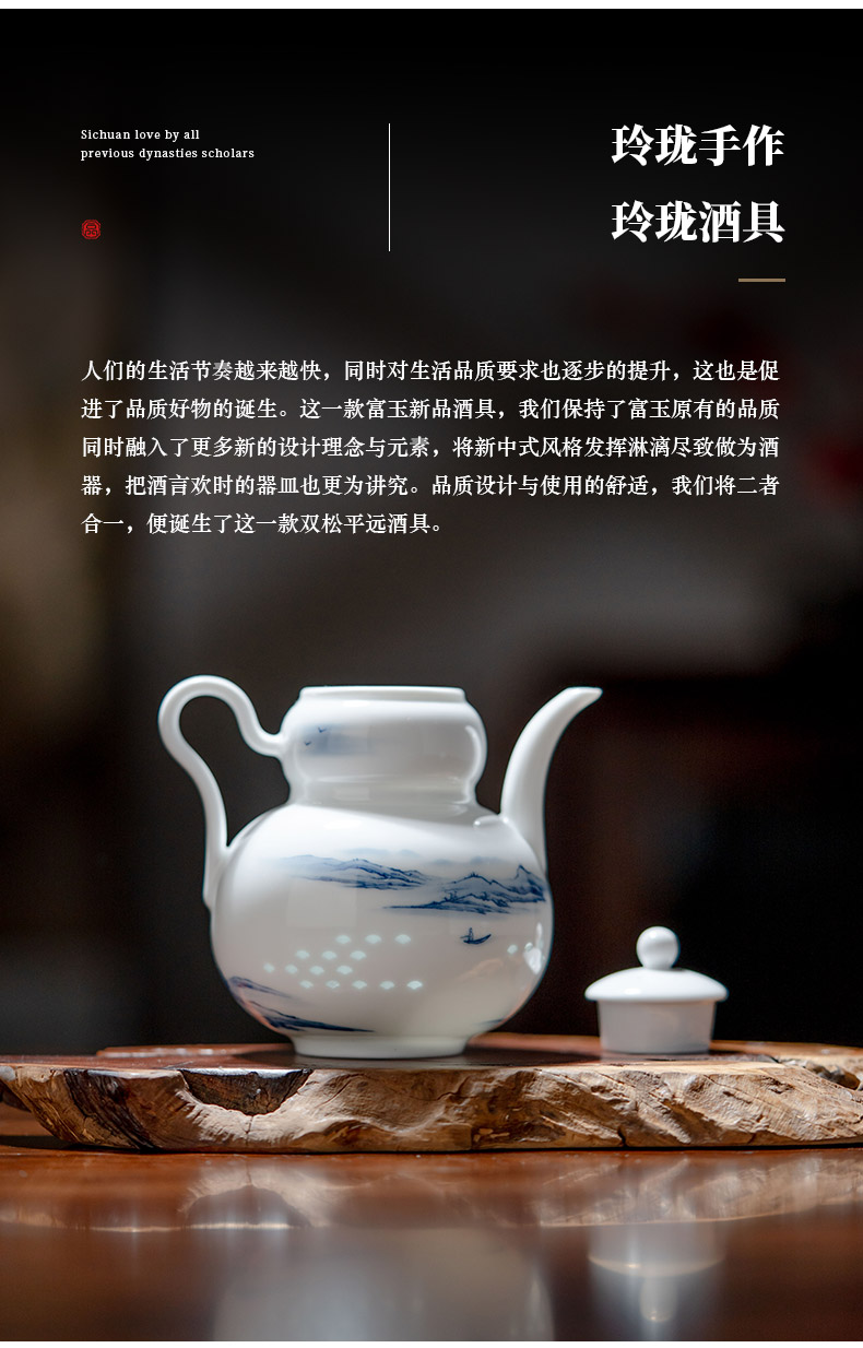 富玉 | 景德镇高温玲珑瓷酒具组合高级感青花玲珑双松平远酒具