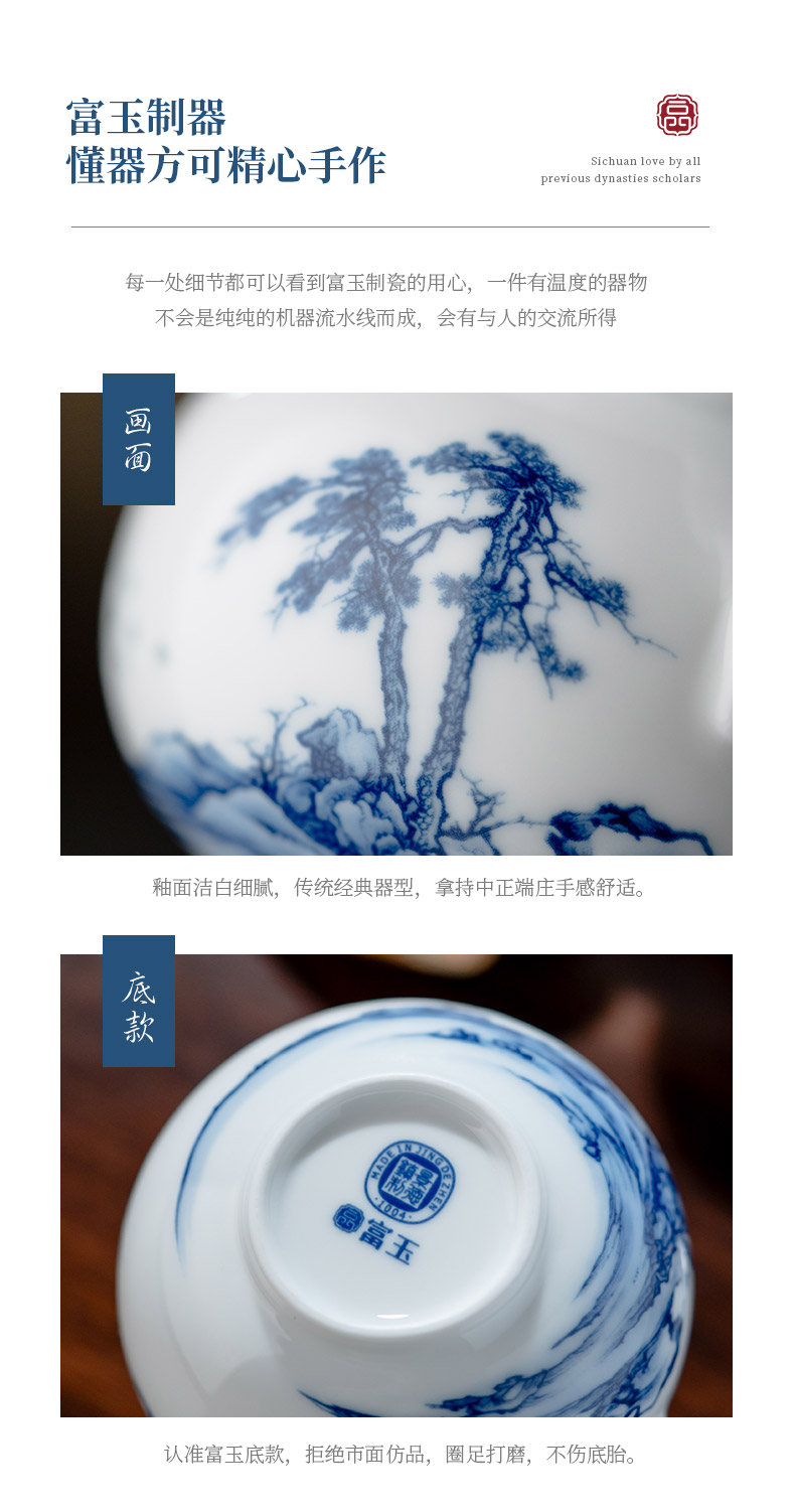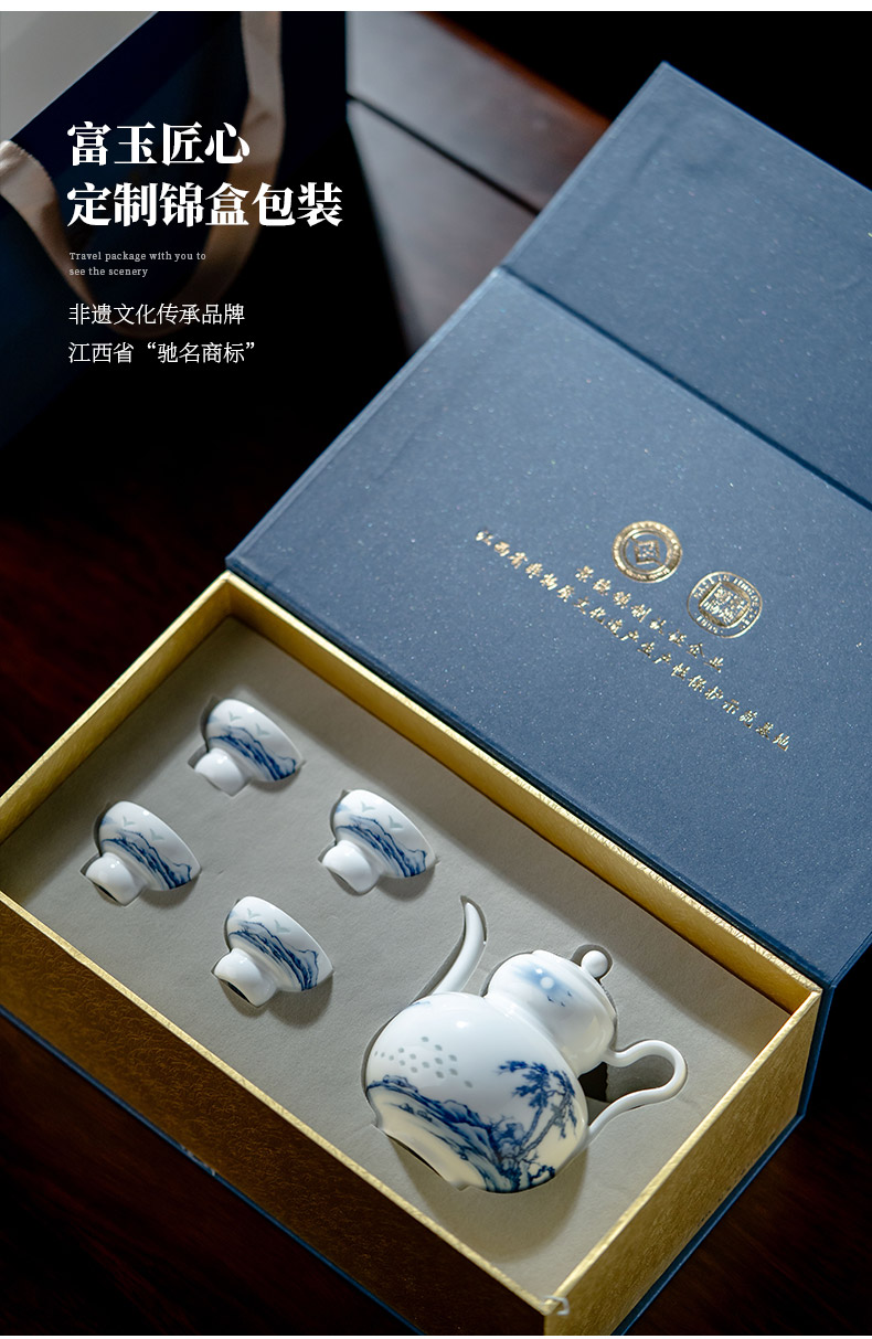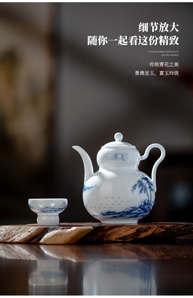 富玉 | 景德镇高温玲珑瓷酒具组合高级感青花玲珑双松平远酒具