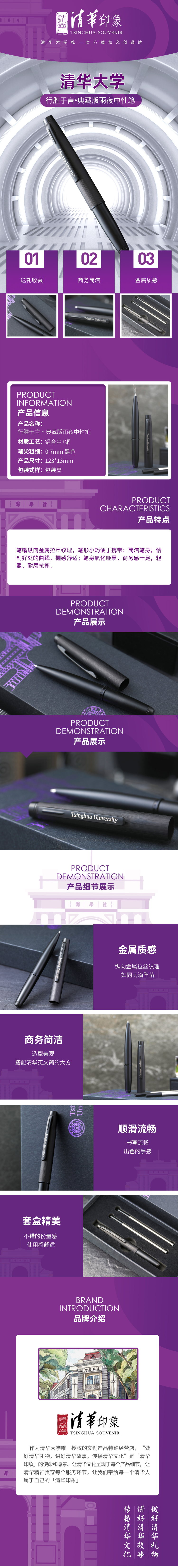 清华大学基础款紫苑中性笔(三支装)