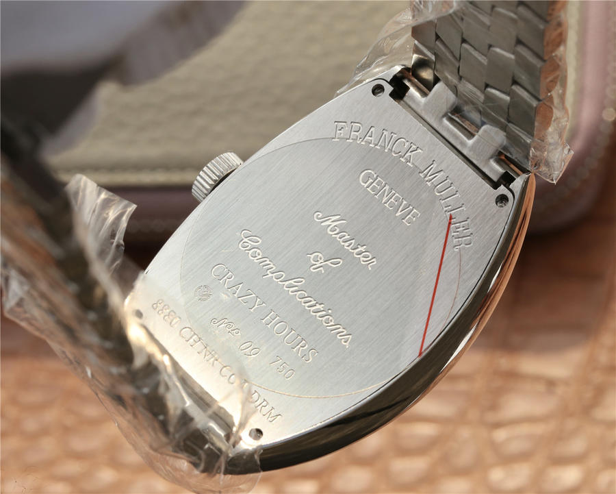 法兰克穆勒全新升级版 Crazy Hours乱跳腕表,突破传统方式显示时间,定制版FM2001 自动上链机械机芯 原装1:1 功能 暗喻不拘一格的独立型格,蓝宝石镜面 永不刮花 1:1 原装壳套可以通用 烧蓝钢超级夜光指针 搪瓷表盘经过十几道工序制作而成,不惜代价还原正品! 复古摩登与现代张扬兼具,佩戴于腕间,彰显独特品味。