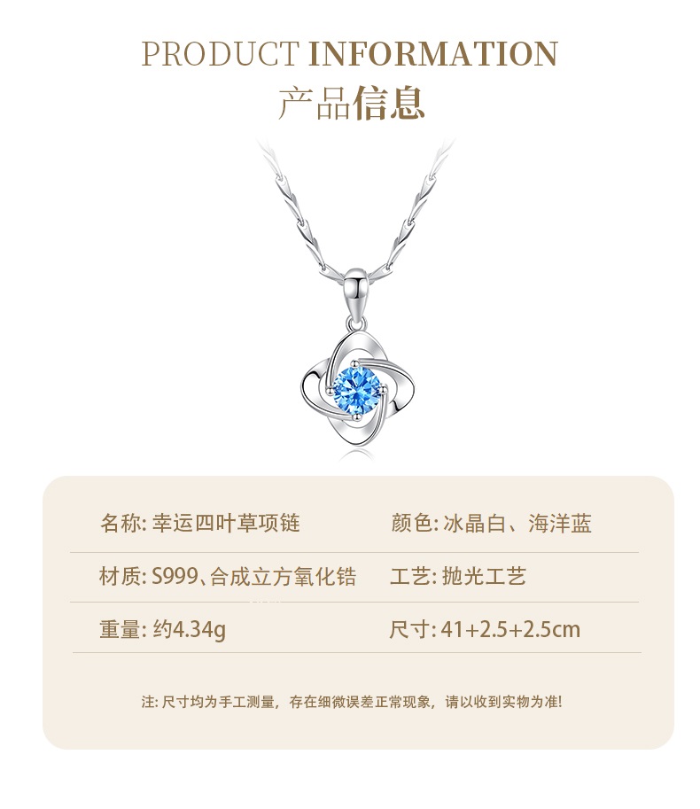 卡蒂罗/KADER 幸运四叶草项链 999纯银新中式好运浪漫闪锆可调节锁骨链 闪耀梦幻璀璨配饰精致百搭优雅气质 礼盒 母亲 520
