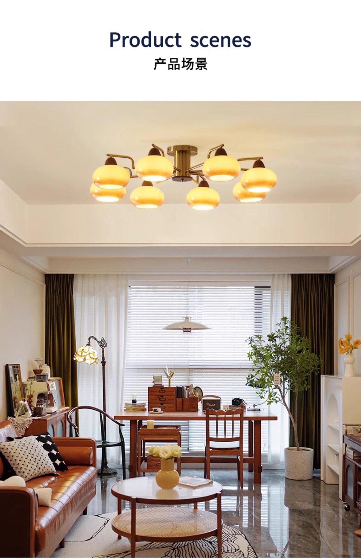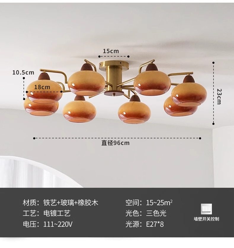 吸顶灯风 书房灯客厅中古vintage奶油主灯卧室餐厅柿子包豪斯全铜