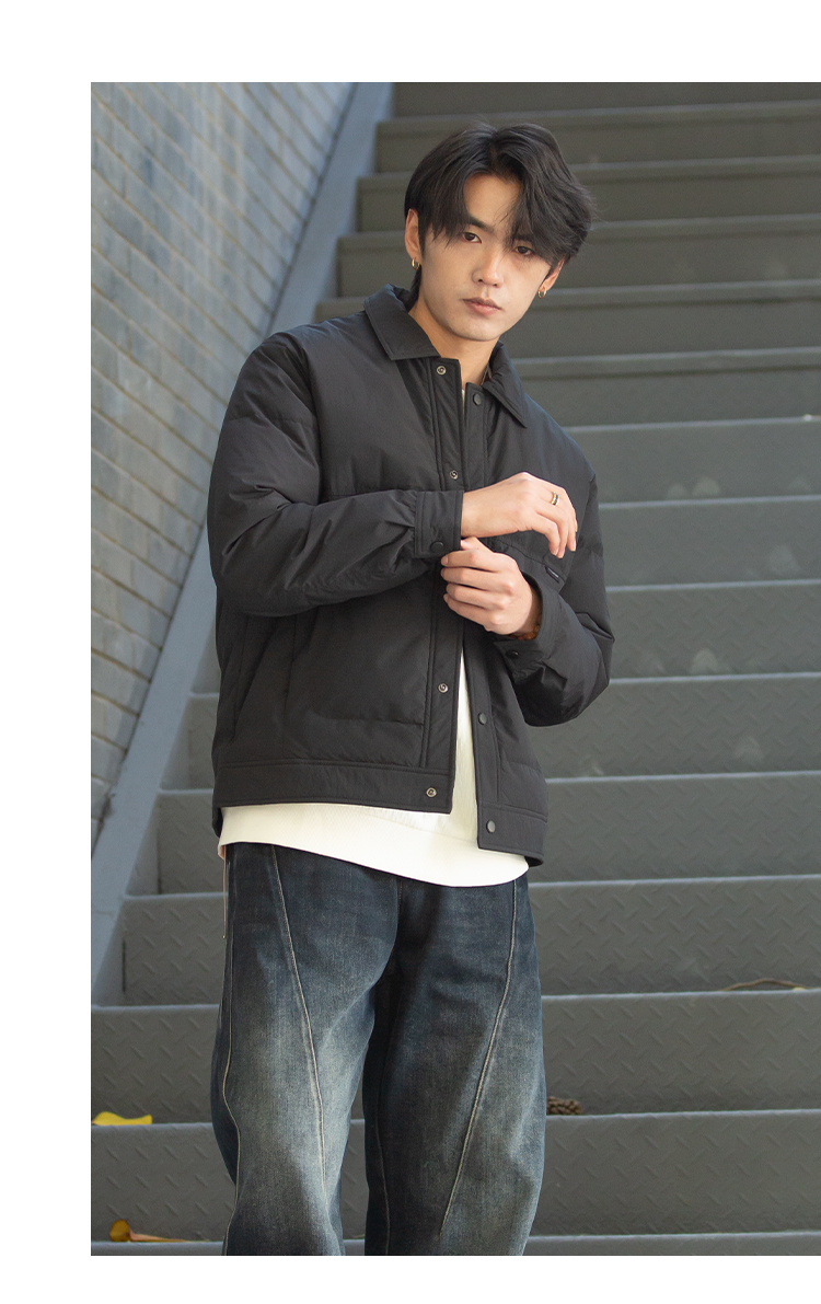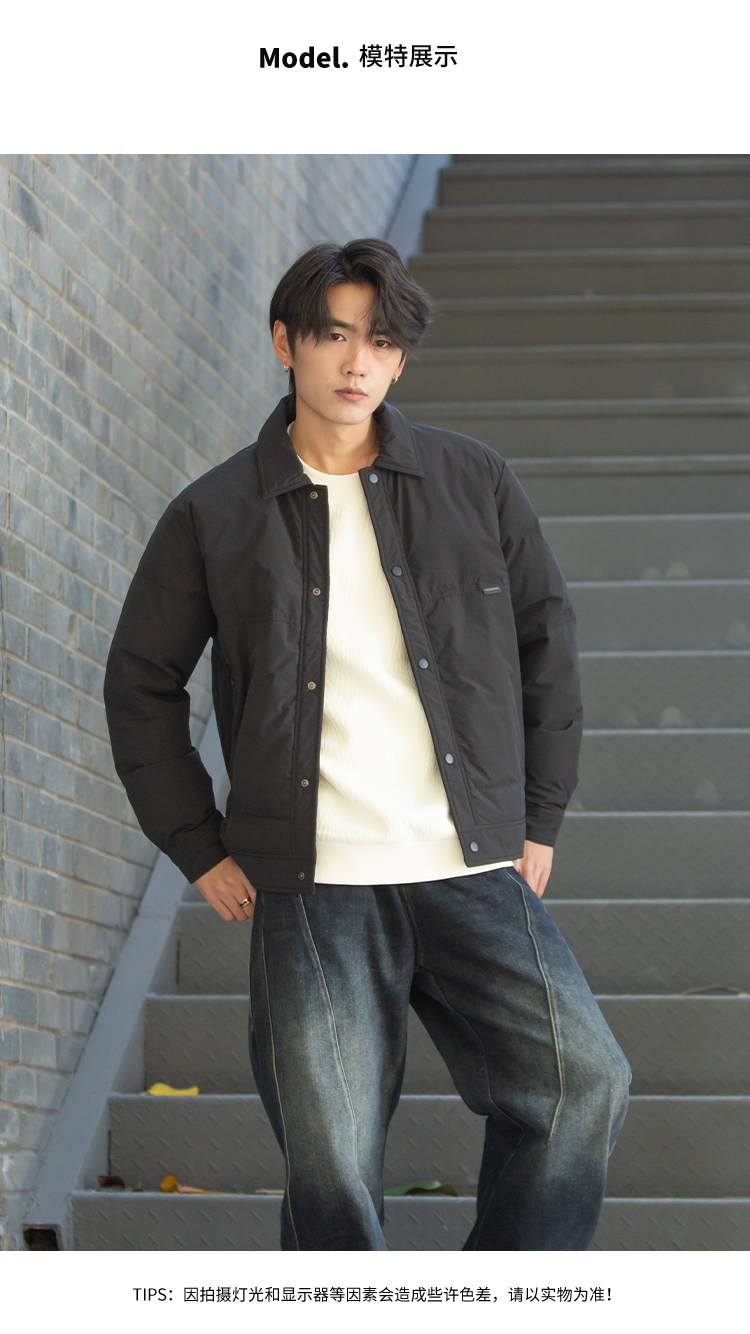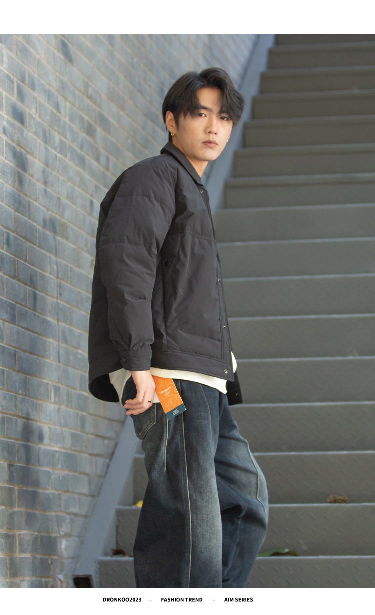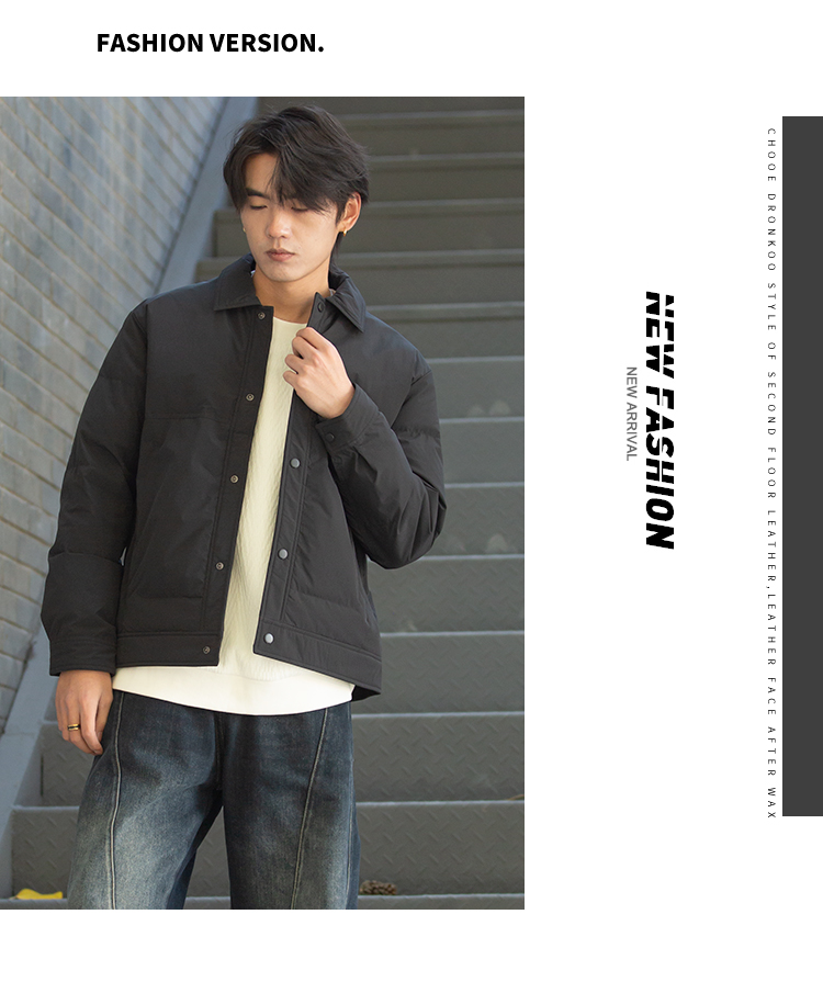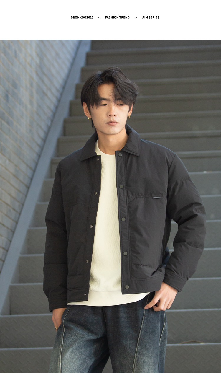 DRONKOO 2025 翻领前襟口袋钉扣基础款短款中厚羽绒服