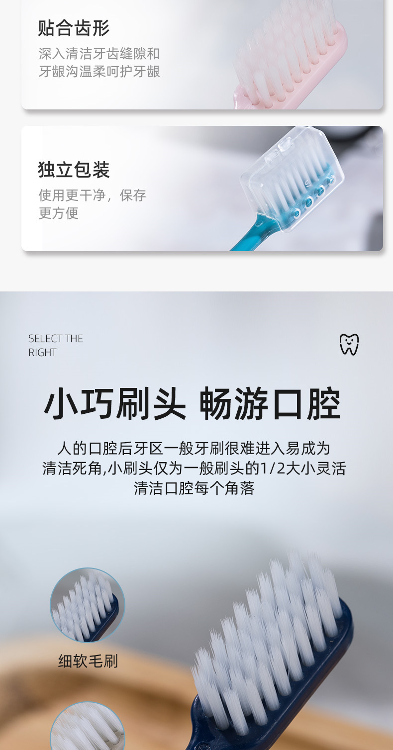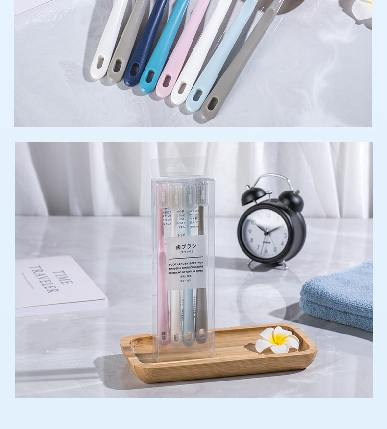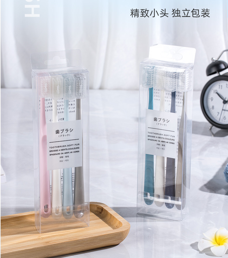 「买一送一!9.9元到手两盒」单盒4支装日系马卡龙带保护套便携旅行成人家用简约小头牙刷口腔护理 商品图4
