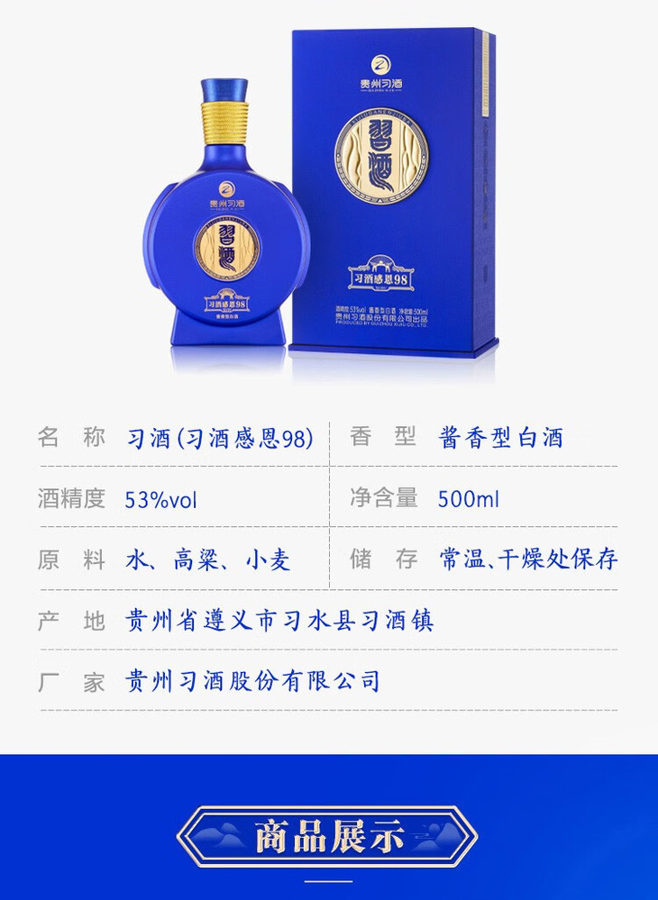 贵州习酒 习酒感恩98 酱香型白酒 53度 500ml*1瓶