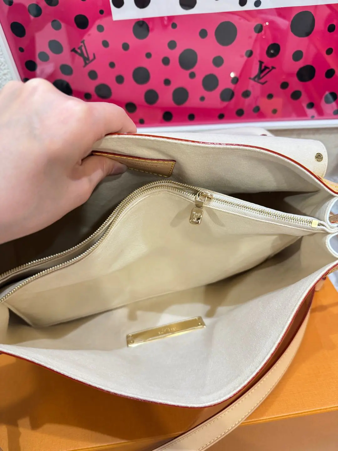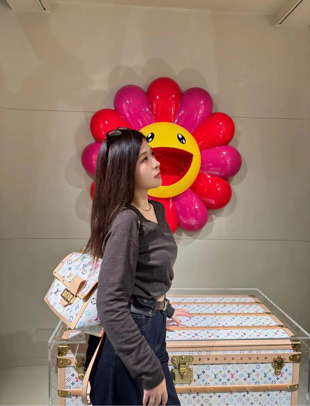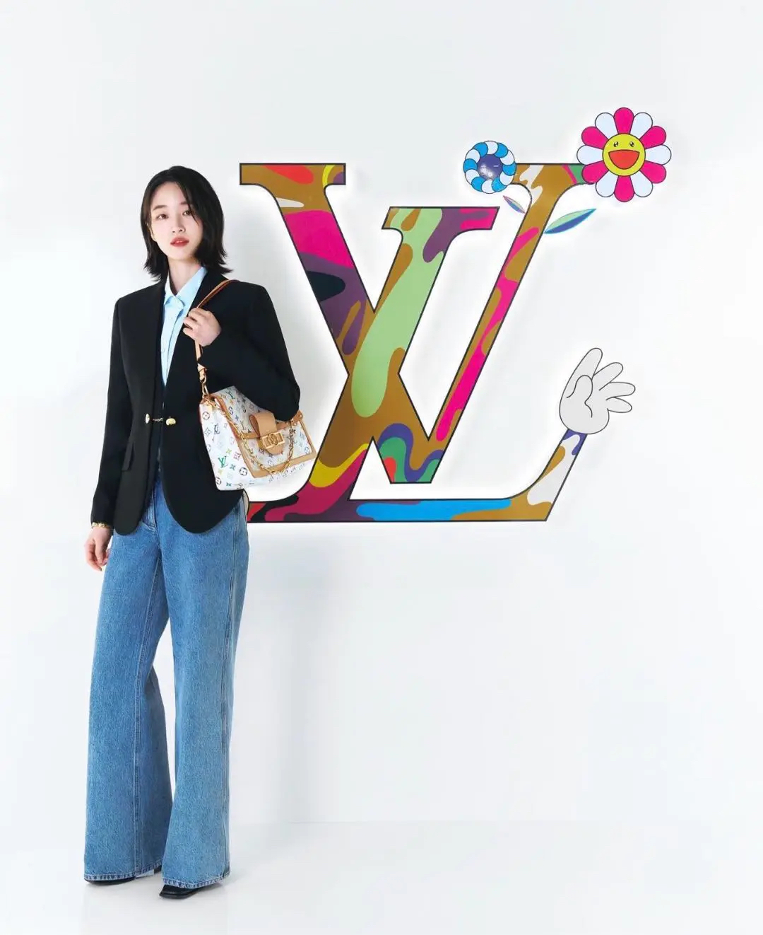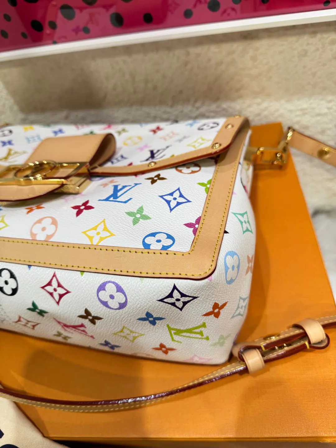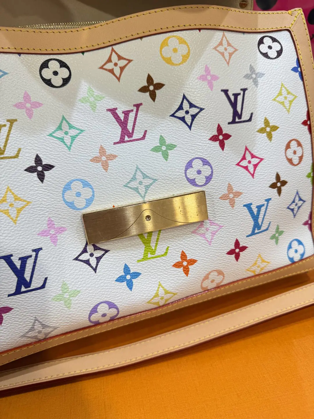 【商品详情】正品二手 LV 达芙妮 大号 白三彩 村上隆联名 斜挎包💗98新 30×22 芯片款 配件:肩带 链条 票 防尘袋 盒子。26年新款 村上隆时隔二十年合作限量款