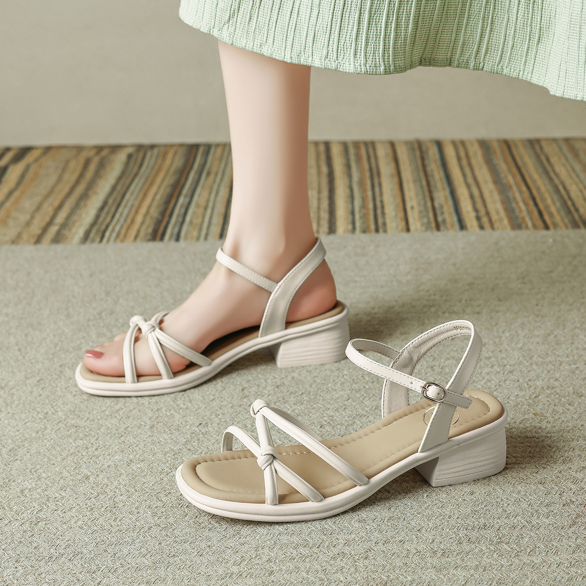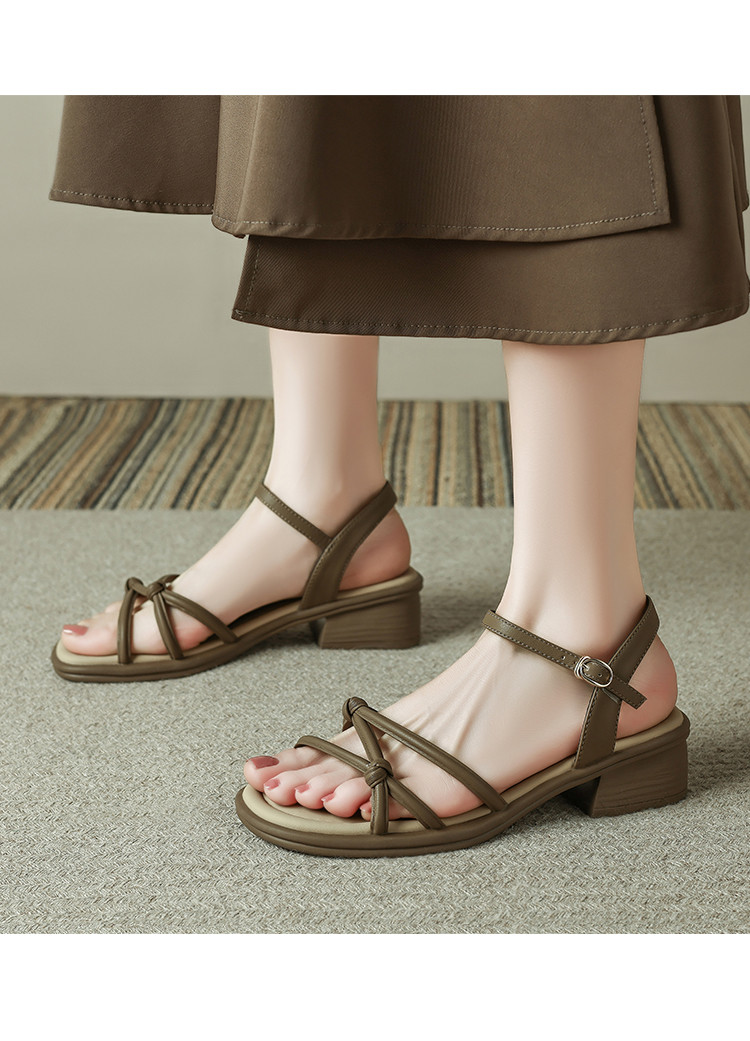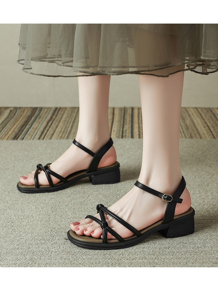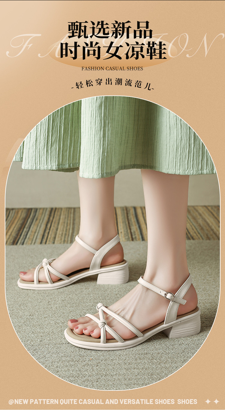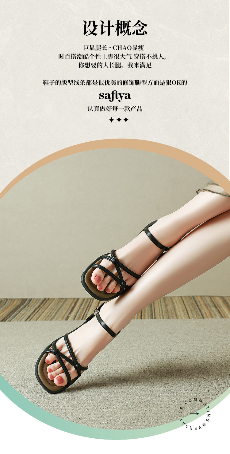 品质好货|Safiya/索菲娅2025夏季百搭一字带交叉细带粗跟高级感外穿凉鞋SFD2111703