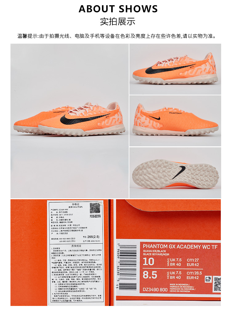 SFS耐克Nike正品PHANTOM GX中端碎钉TF人草低帮足球鞋DZ3490-800