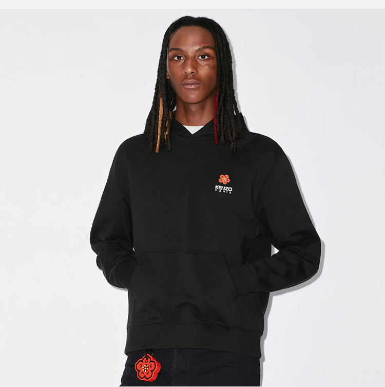 KENZO 高田贤三 男士“BOKE FLOWER”徽章刺绣棉质长袖连帽卫衣 黑色 FD55 SW441 4MF 99J