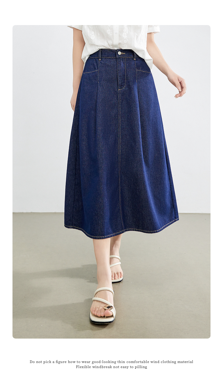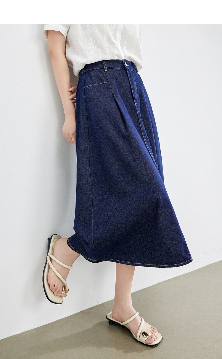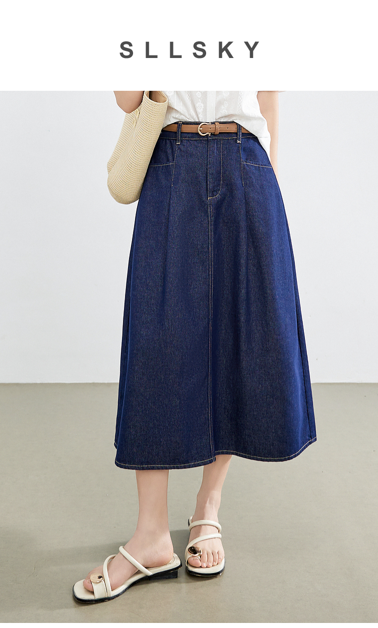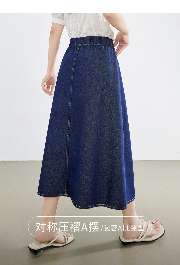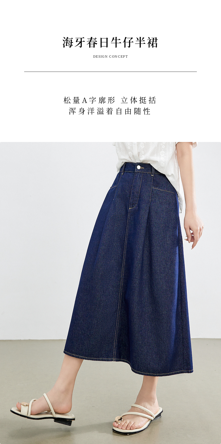 熙世界复古原色牛仔半身裙女春夏薄款高腰压褶a字伞裙2025年新款