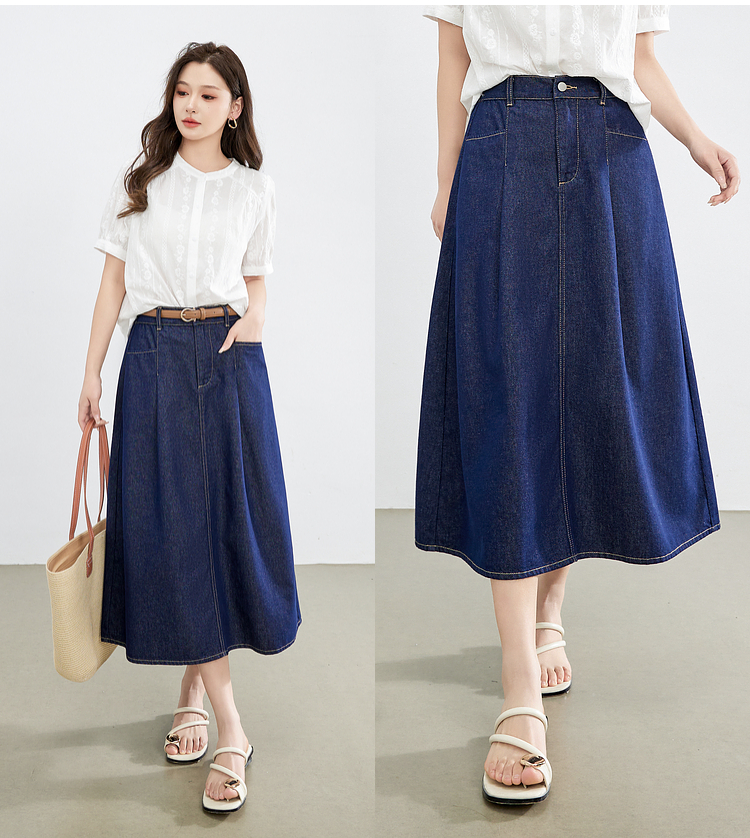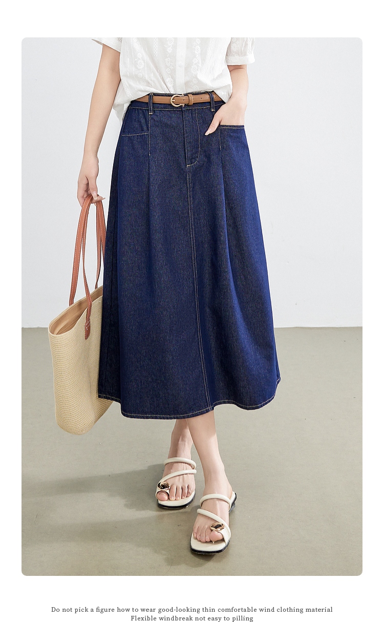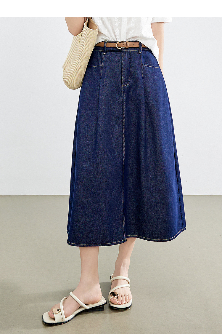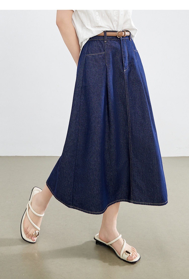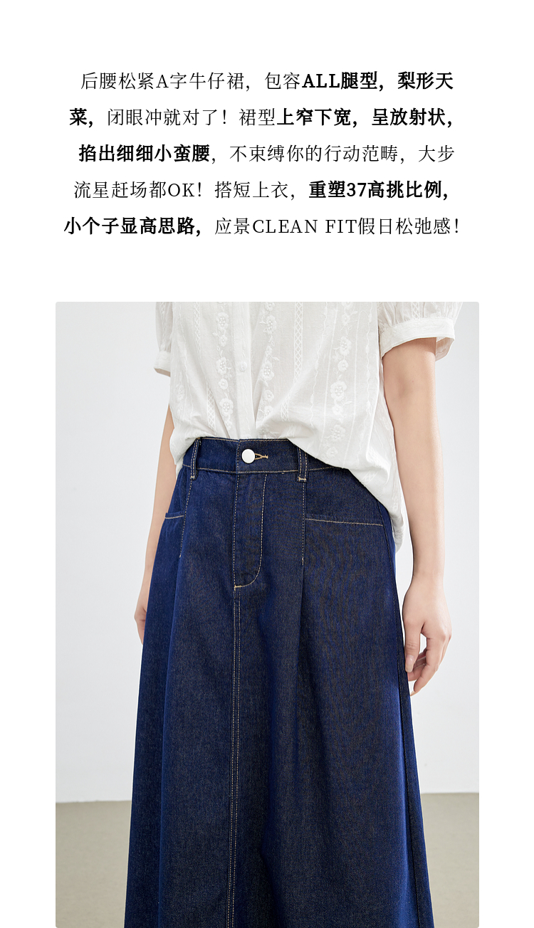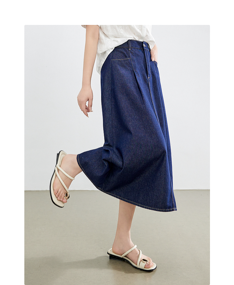 熙世界复古原色牛仔半身裙女春夏薄款高腰压褶a字伞裙2025年新款