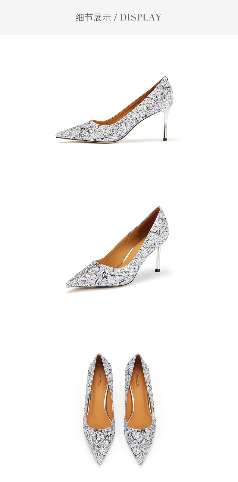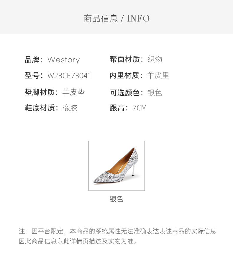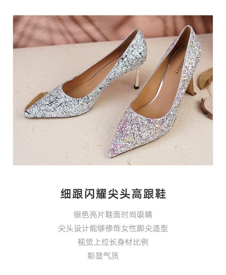 westory优雅法式闪耀婚鞋尖头气质名媛风高跟鞋W23CE73041