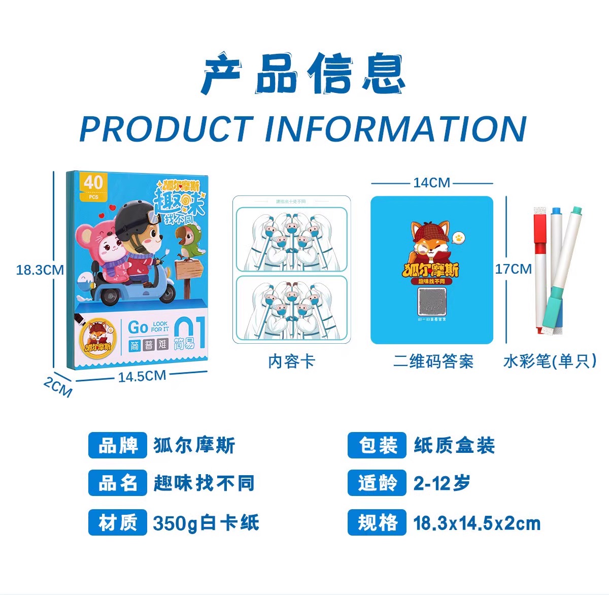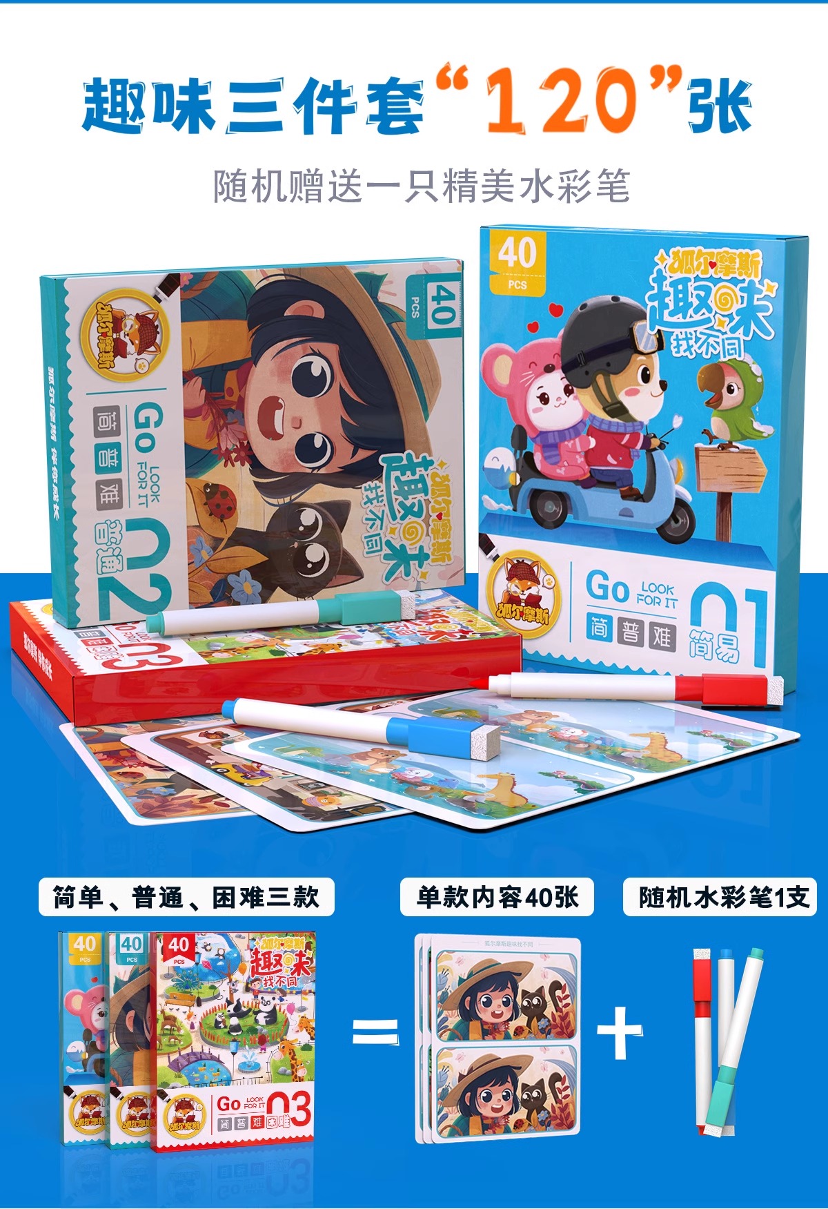 开学季福利!【儿童专注力训练图画卡大号三盒】狐尔摩斯趣味找不同卡牌 逻辑思维游戏卡牌