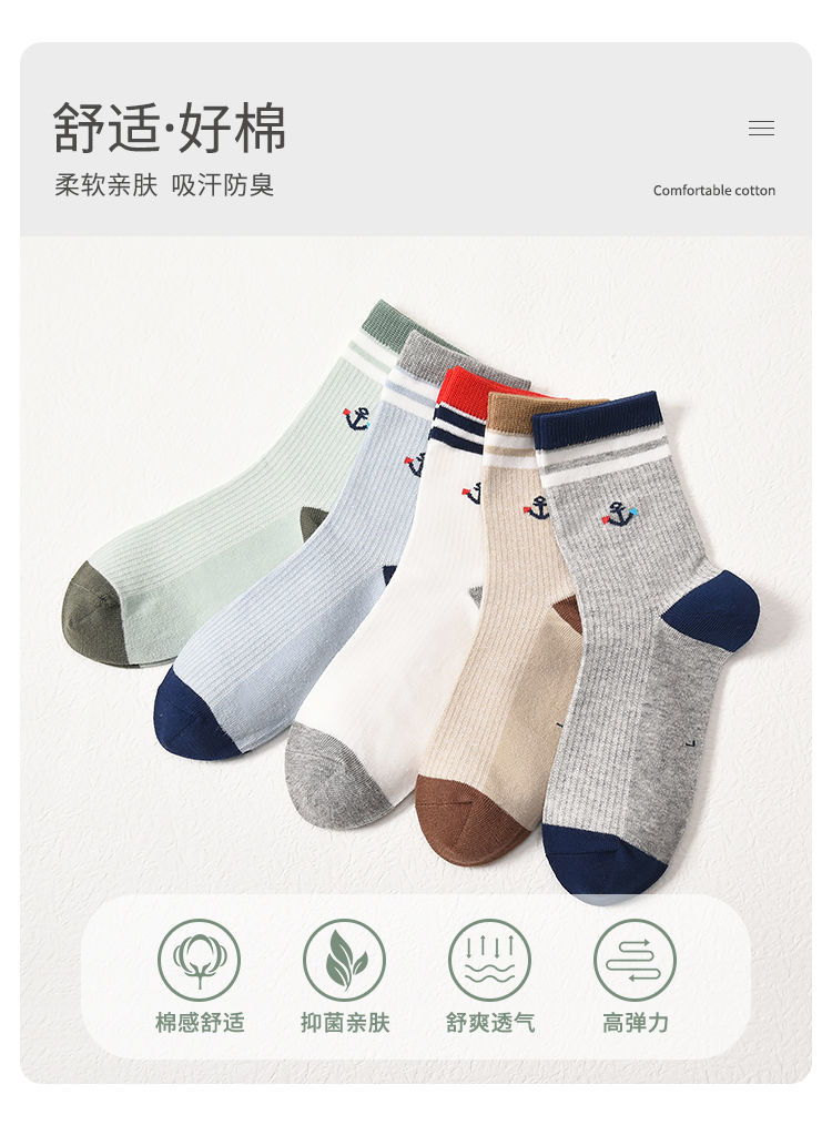 【儿童纯棉中筒袜】吸汗防臭 春夏季儿童男士长袜薄款童袜