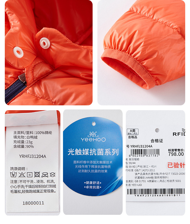英氏-童衣类(冬)E1英羽帽蛤深橘红73CM