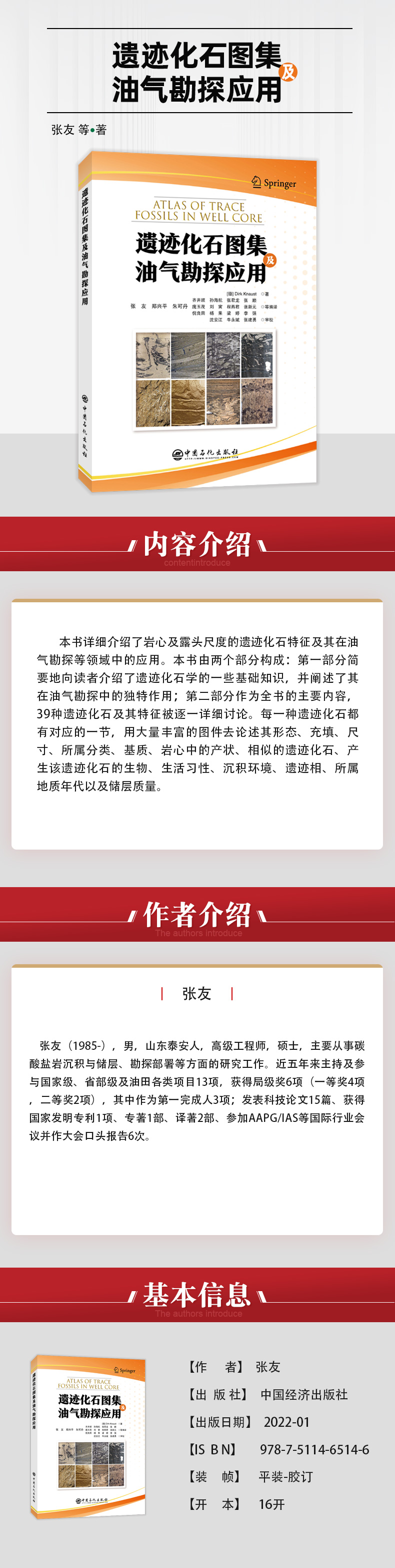 本书详细介绍了岩心及露头尺度的遗迹化石特征及其在油气勘探等领域中的应用。本书由两个部分构成:*部分简要地向读者介绍了遗迹化石学的一些基础知识,并阐述了其在油气勘探中的独特作用;*部分作为全书的主要内容,39种遗迹化石及其特征被逐一详细讨论。每一种遗迹化石*有对应的一节,用大量丰富的图件去论述其形态、充填、尺寸、所属分类、基质、岩心中的产状、相似的遗迹化石、产生该遗迹化石的生物、生活习性、沉积环境、遗迹相、所属地质年代以及储层质量。