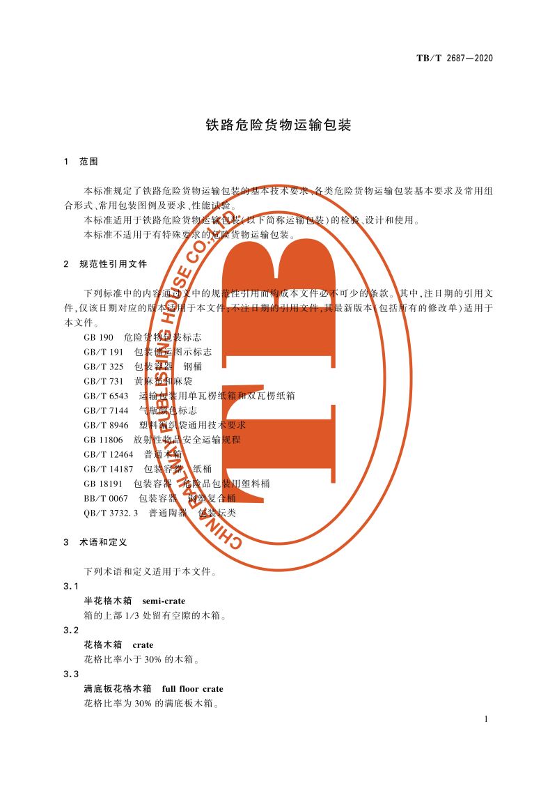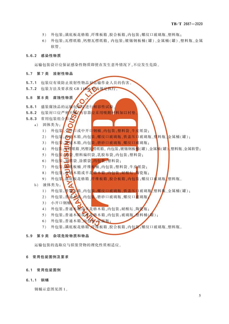15113.6231 铁路危险货物运输包装(TB/T 2687—2020)