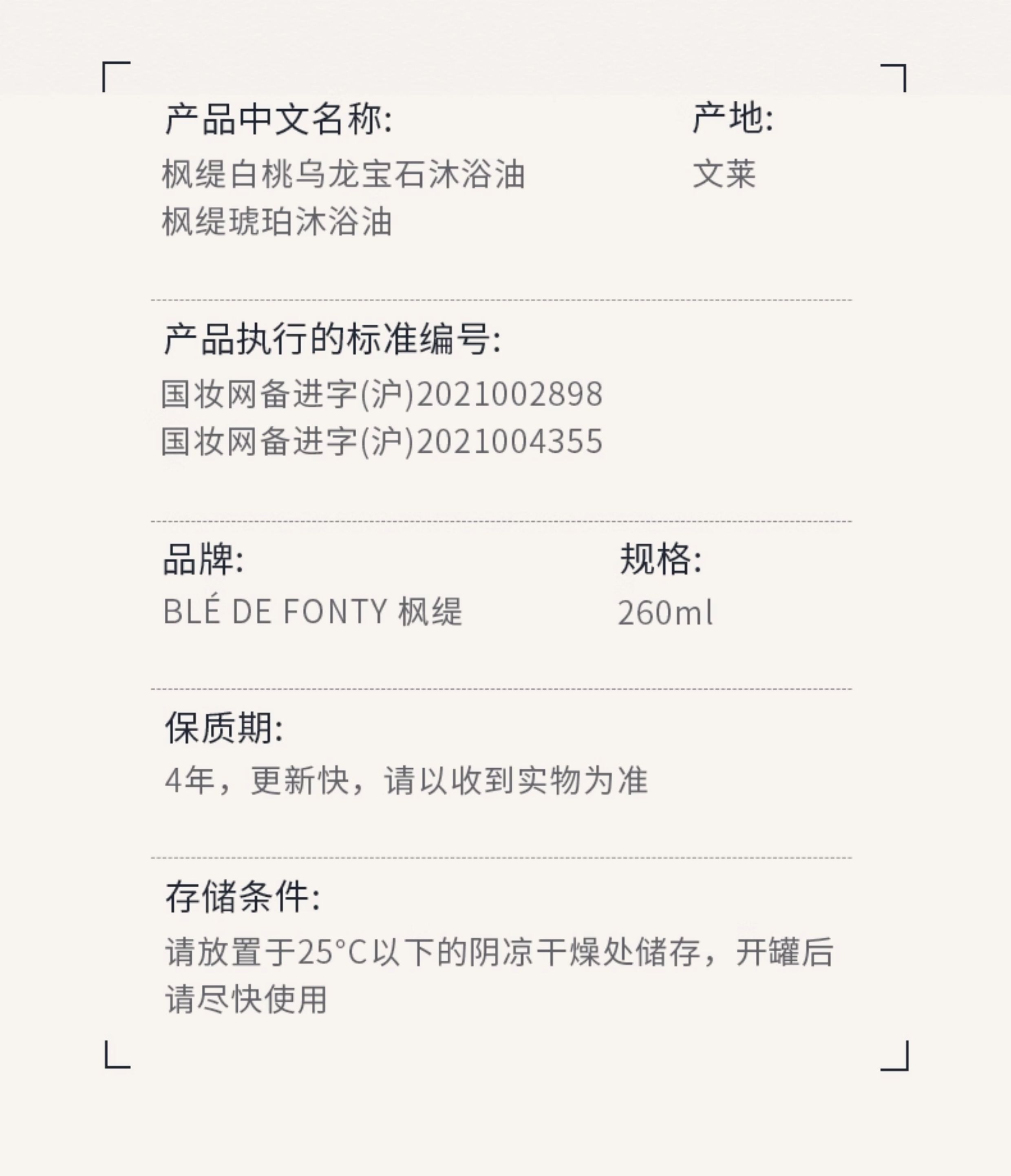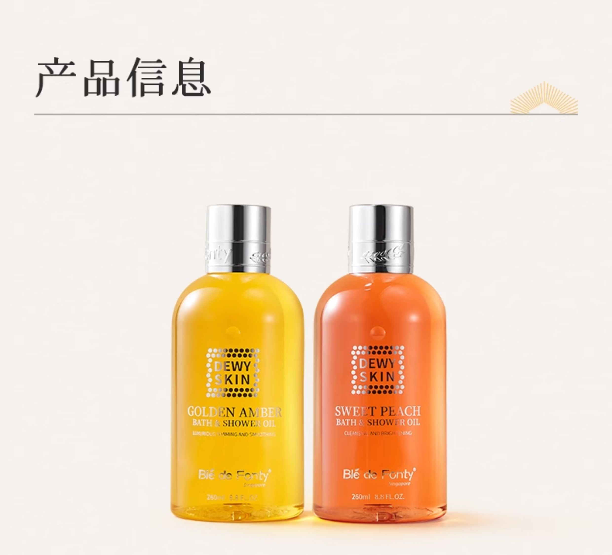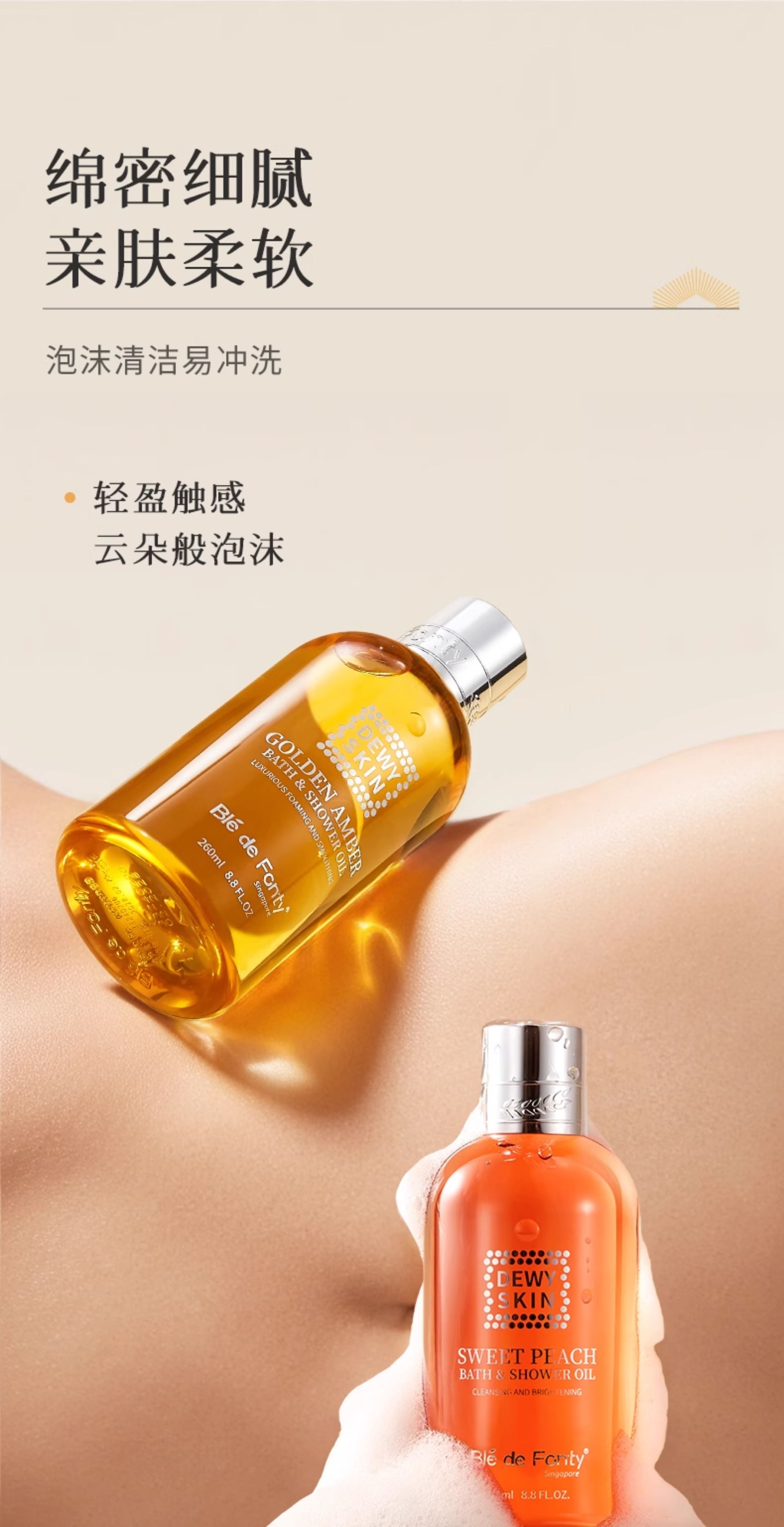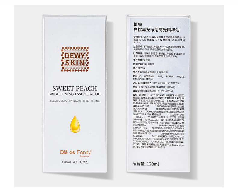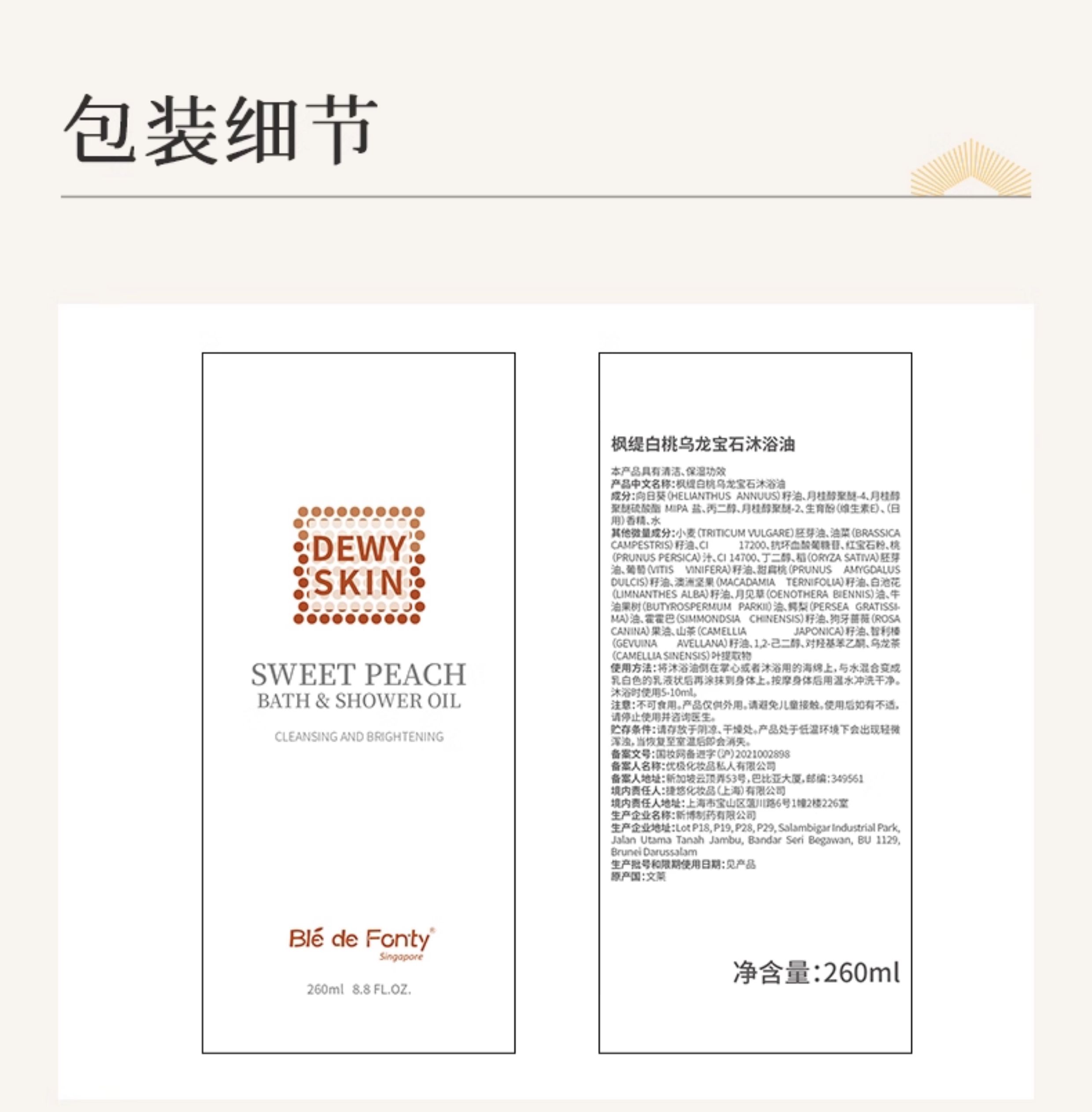 新加坡枫缇Ble de Fonty白桃乌龙琥珀沐浴油/白桃乌龙身体油【任意1瓶送6粒面部胶囊,任意2瓶送12粒面部胶囊+定制经络按摩梳1个】】