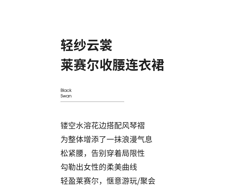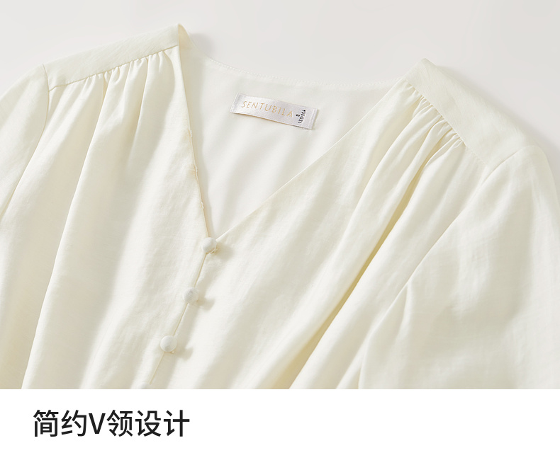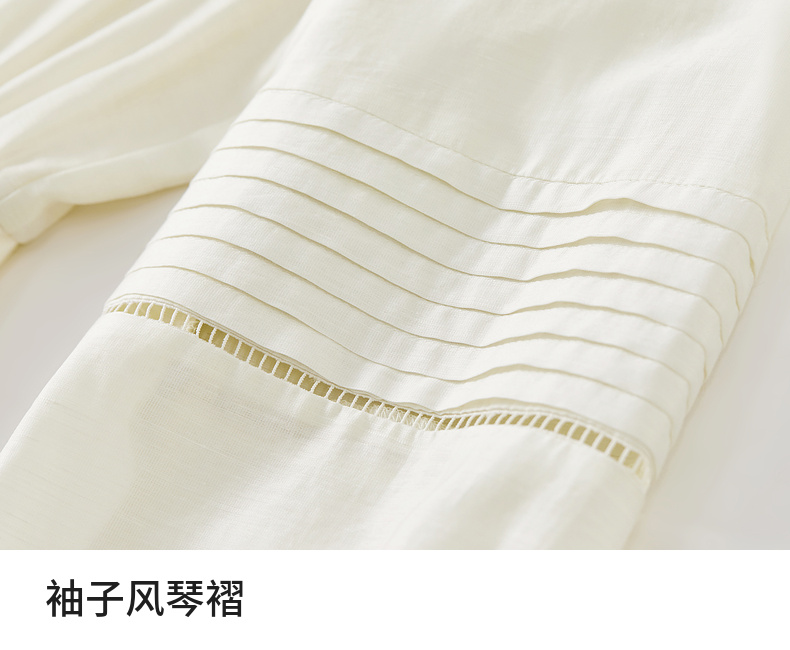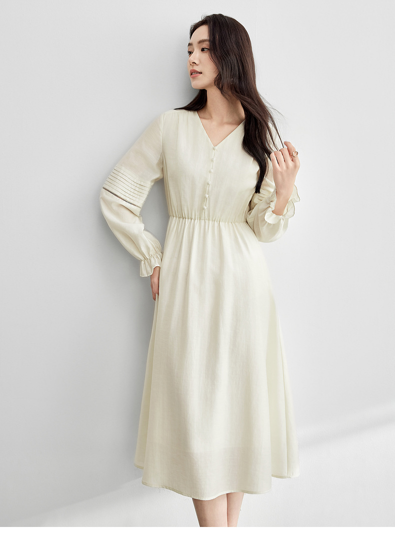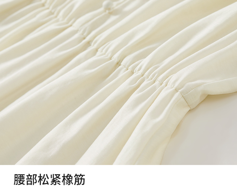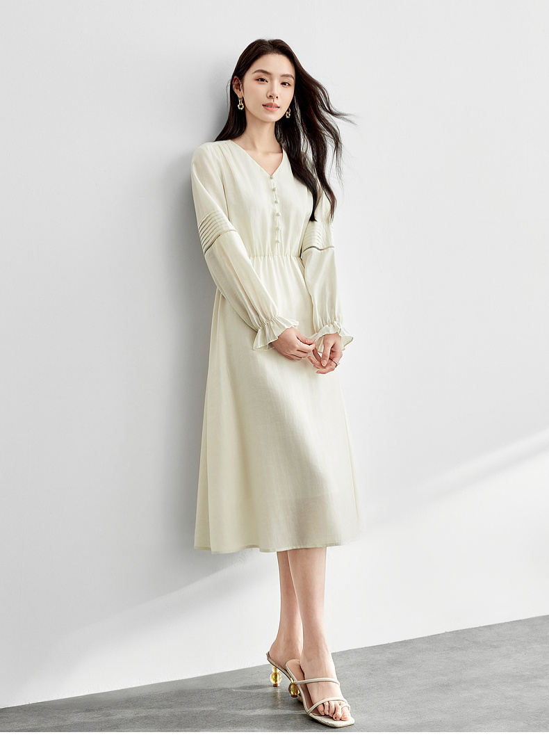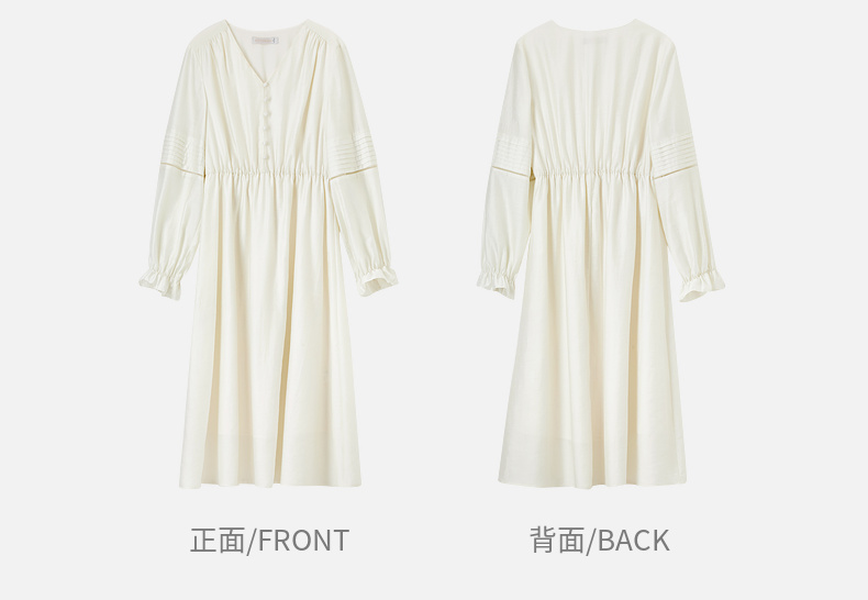 【内购】优雅浪漫度假V领镂空荷叶袖口松紧腰A字连衣裙-151L58248