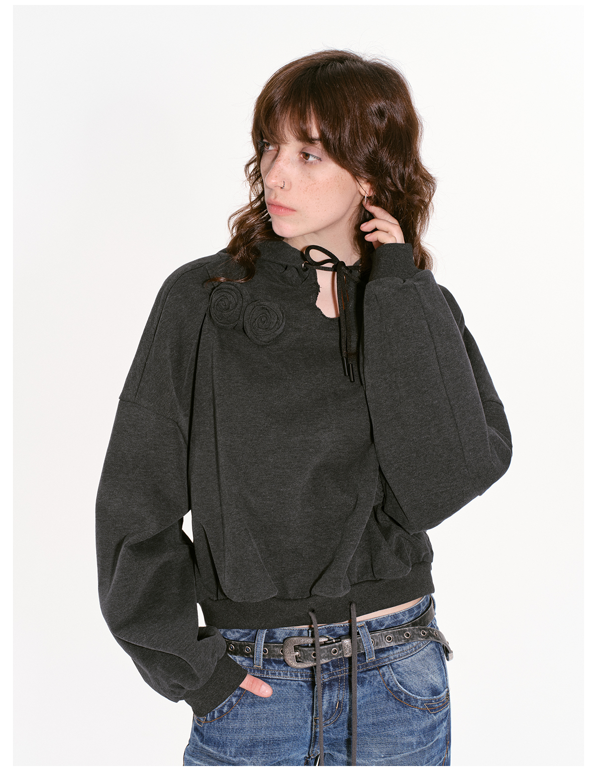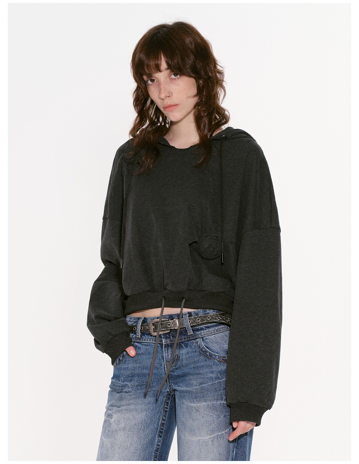 出逃赤岗西/24AWS10/立体玫瑰连帽卫衣