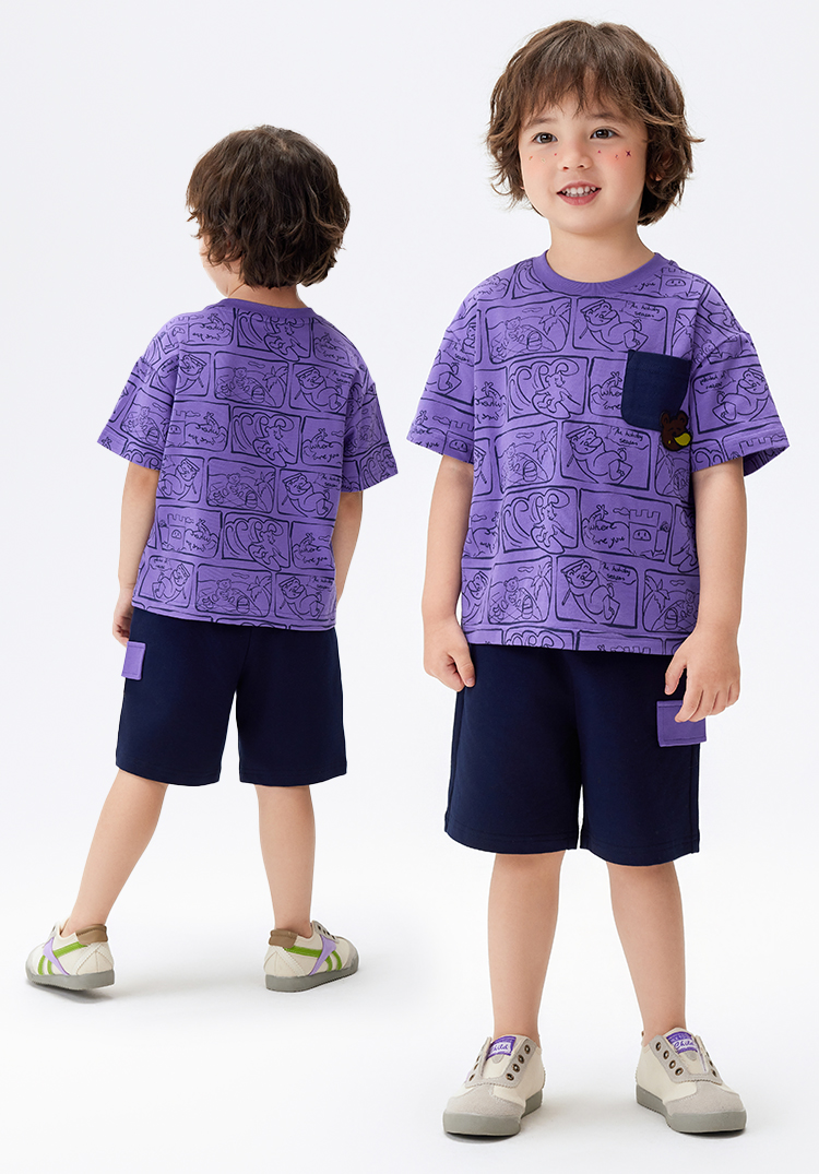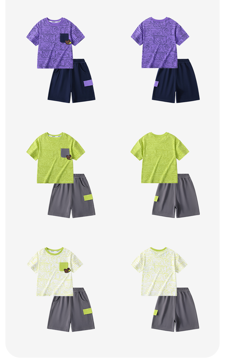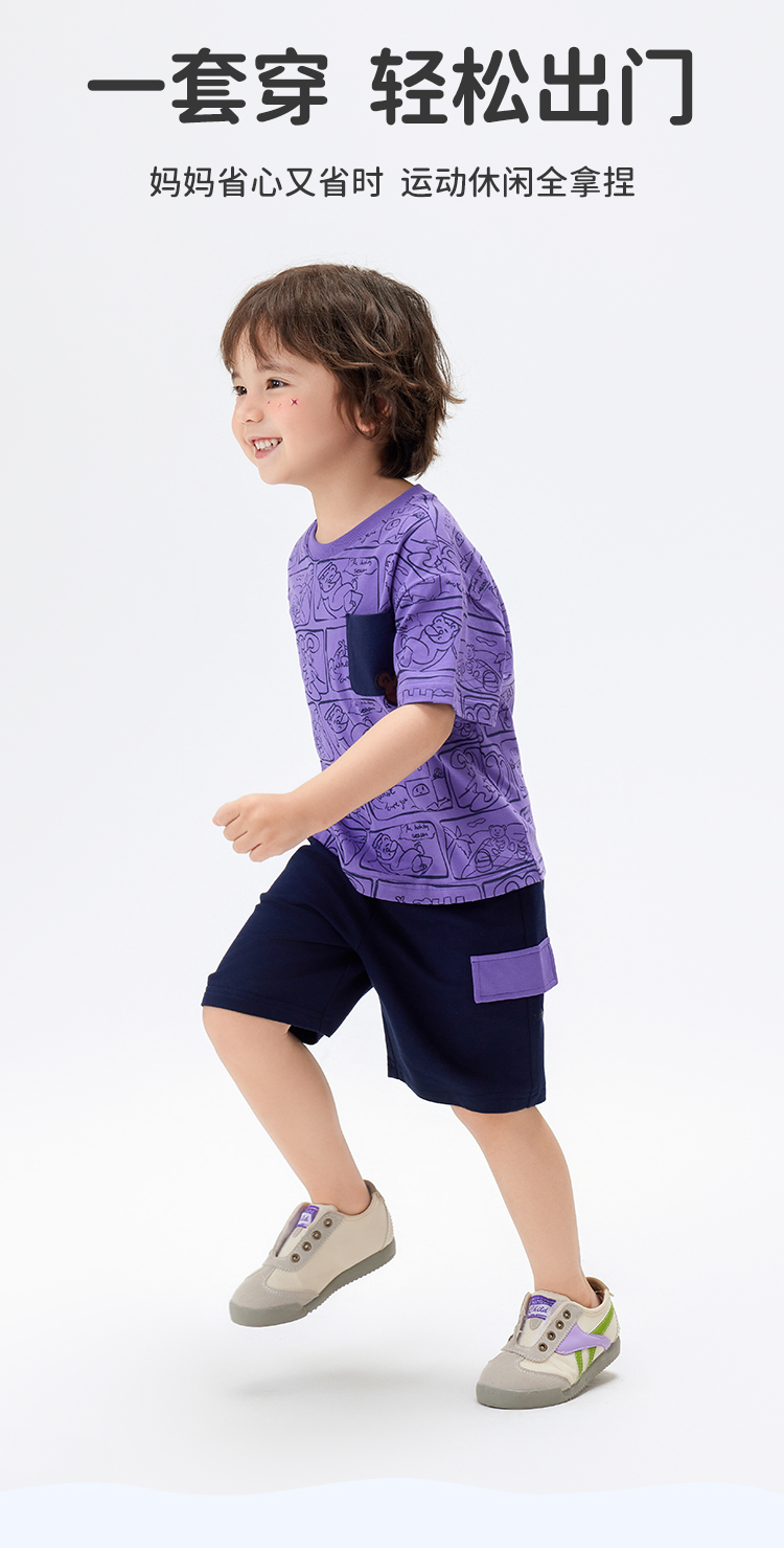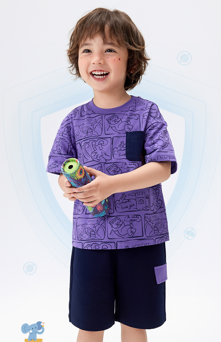 【凉感抑菌 两件套】【90-140】【MQDmini】男童薄款冰感短袖t恤抗菌短裤套装