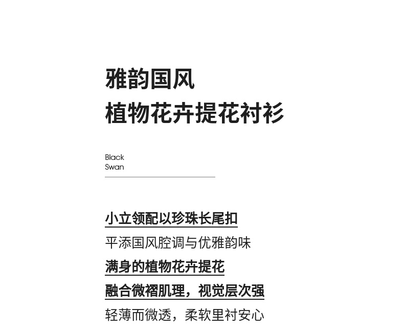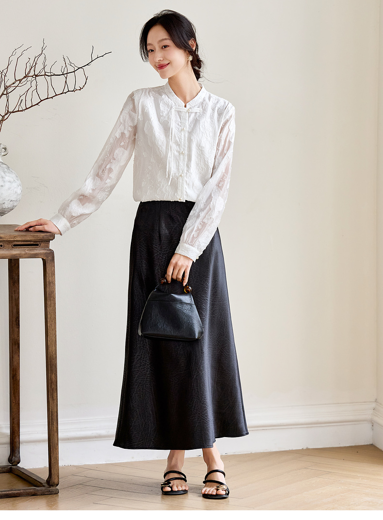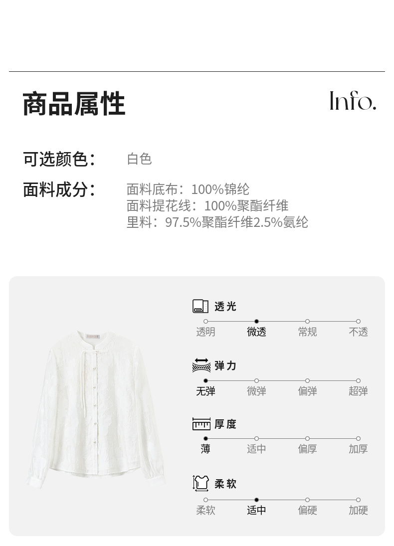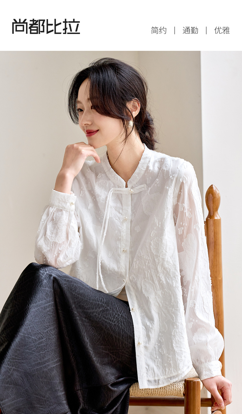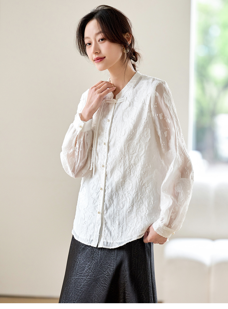 【内购】【国风衬衫】优雅立领珍珠长尾扣植物花卉提花肌理感微透薄衬衫-151C57835