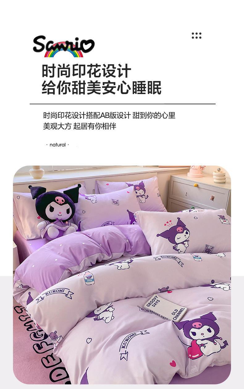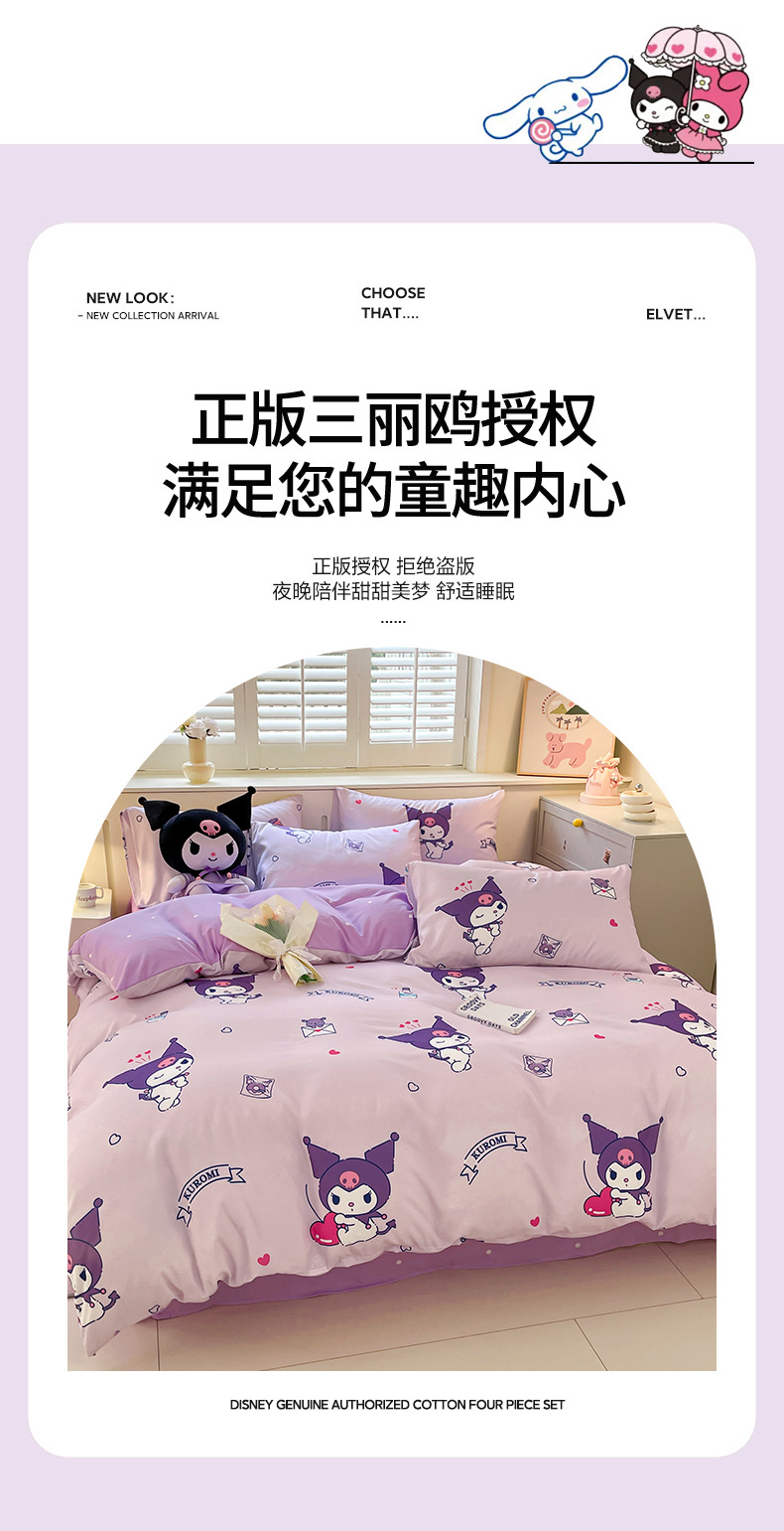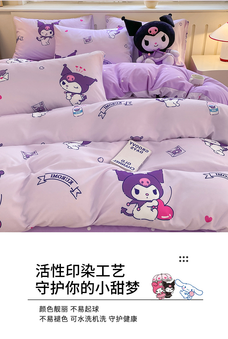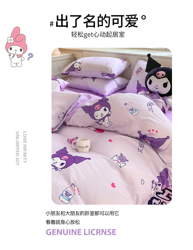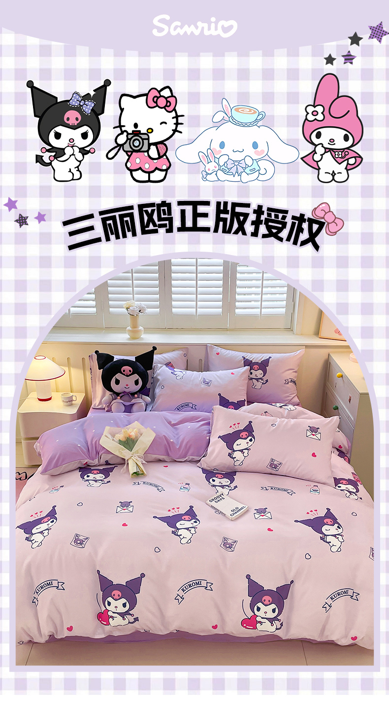 【正品授权,23款任选】三丽鸥库洛米玉桂狗四件套水洗棉卡通可爱床单儿童被套床上用品四件套