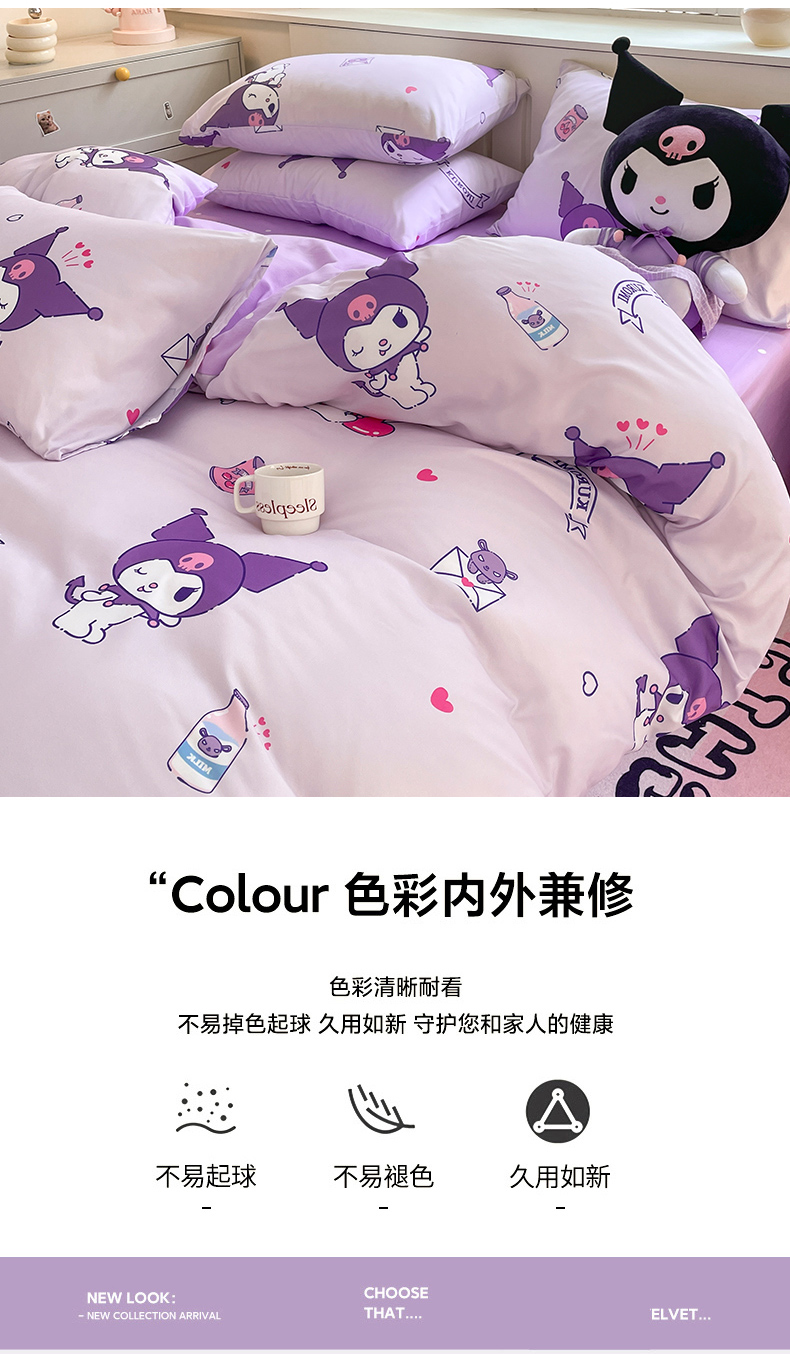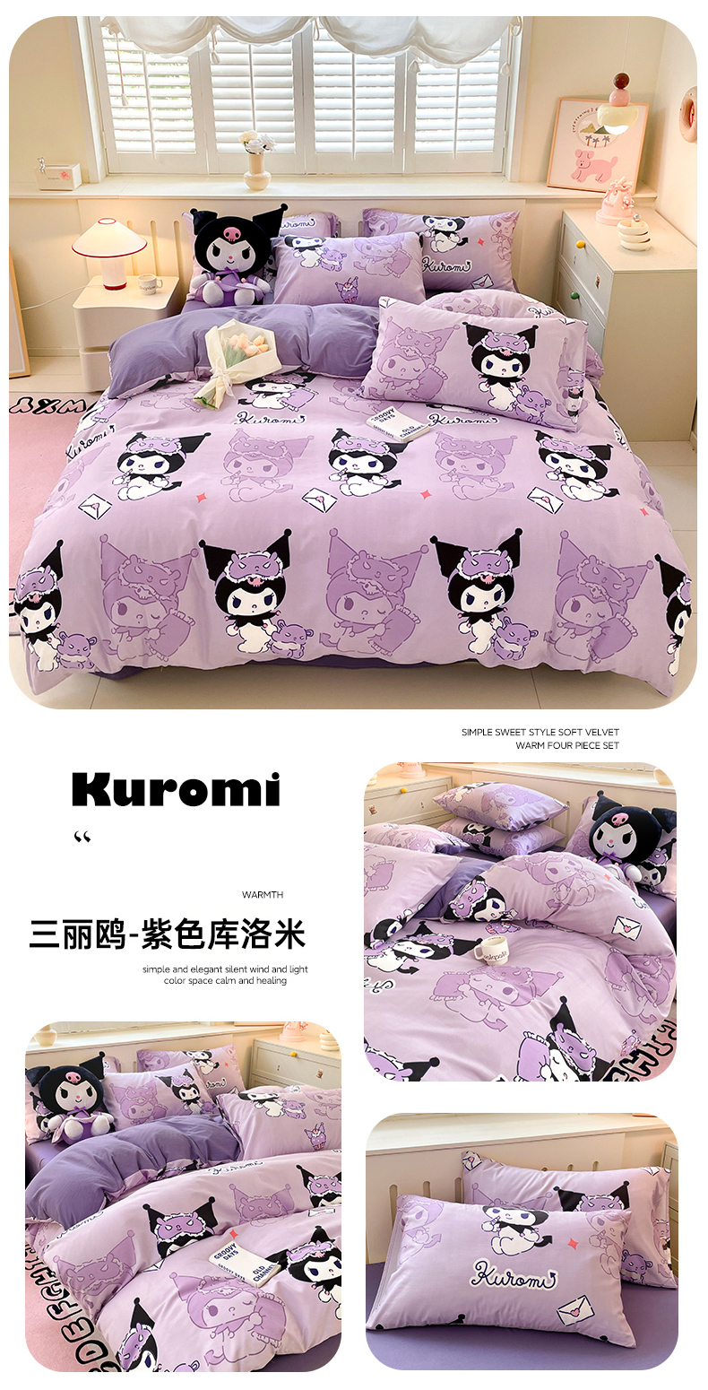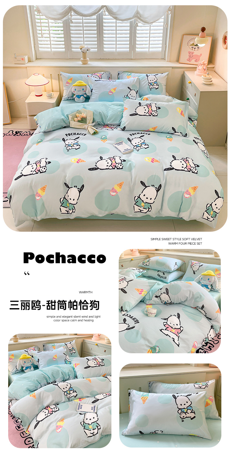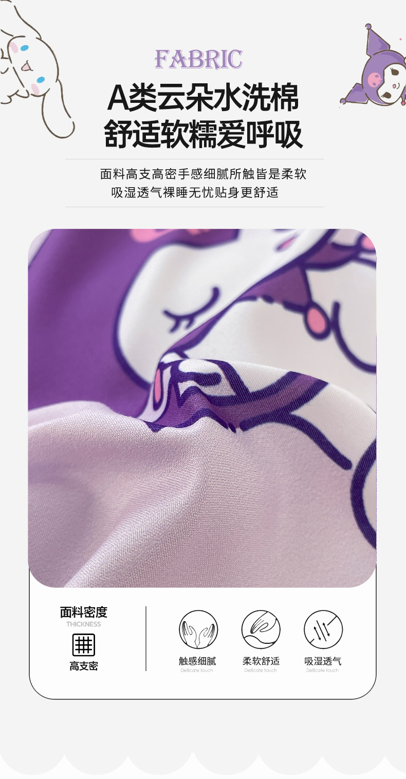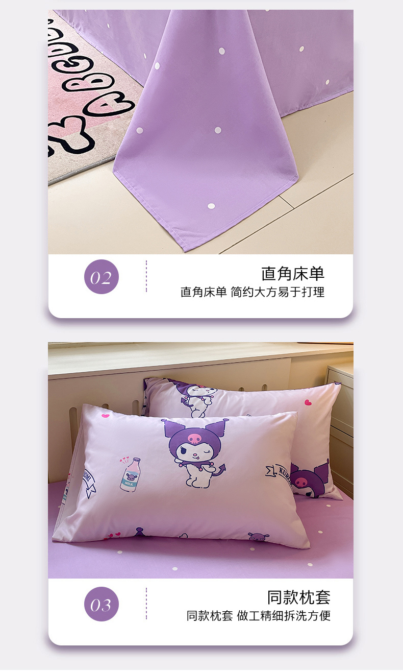 【正品授权,23款任选】三丽鸥库洛米玉桂狗四件套水洗棉卡通可爱床单儿童被套床上用品四件套
