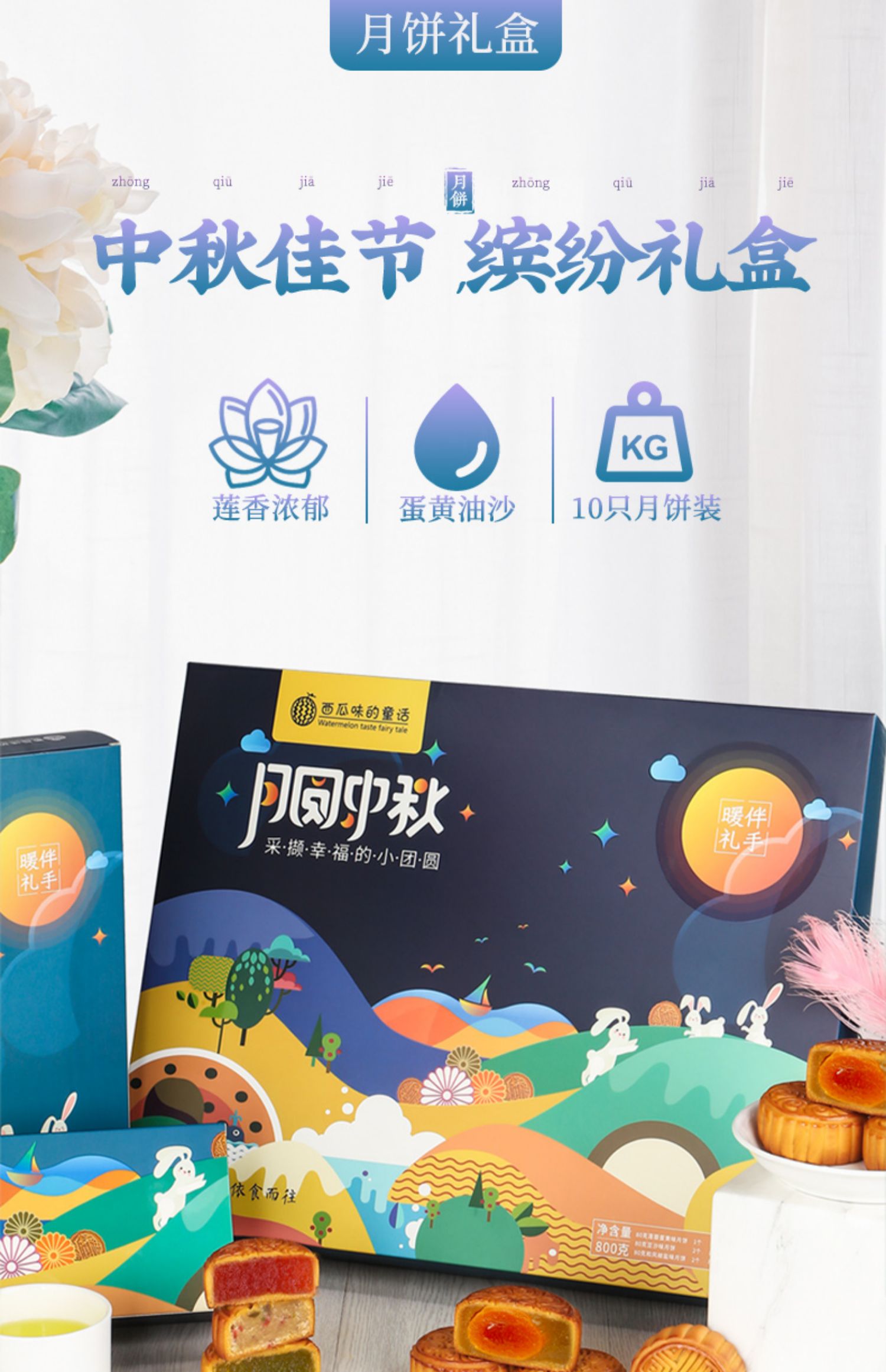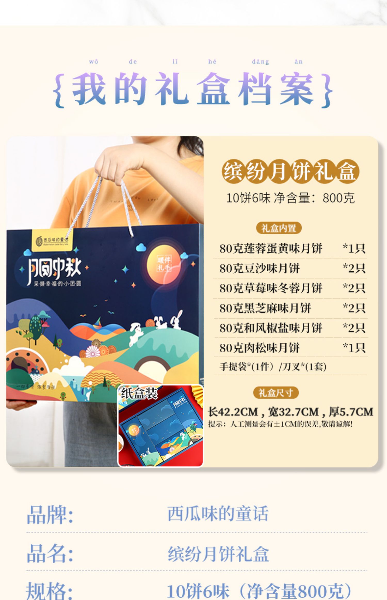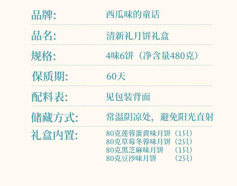 【一般贸易】西瓜味的童话 中秋节月饼礼盒清新礼480g(80g*6个)