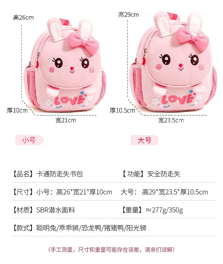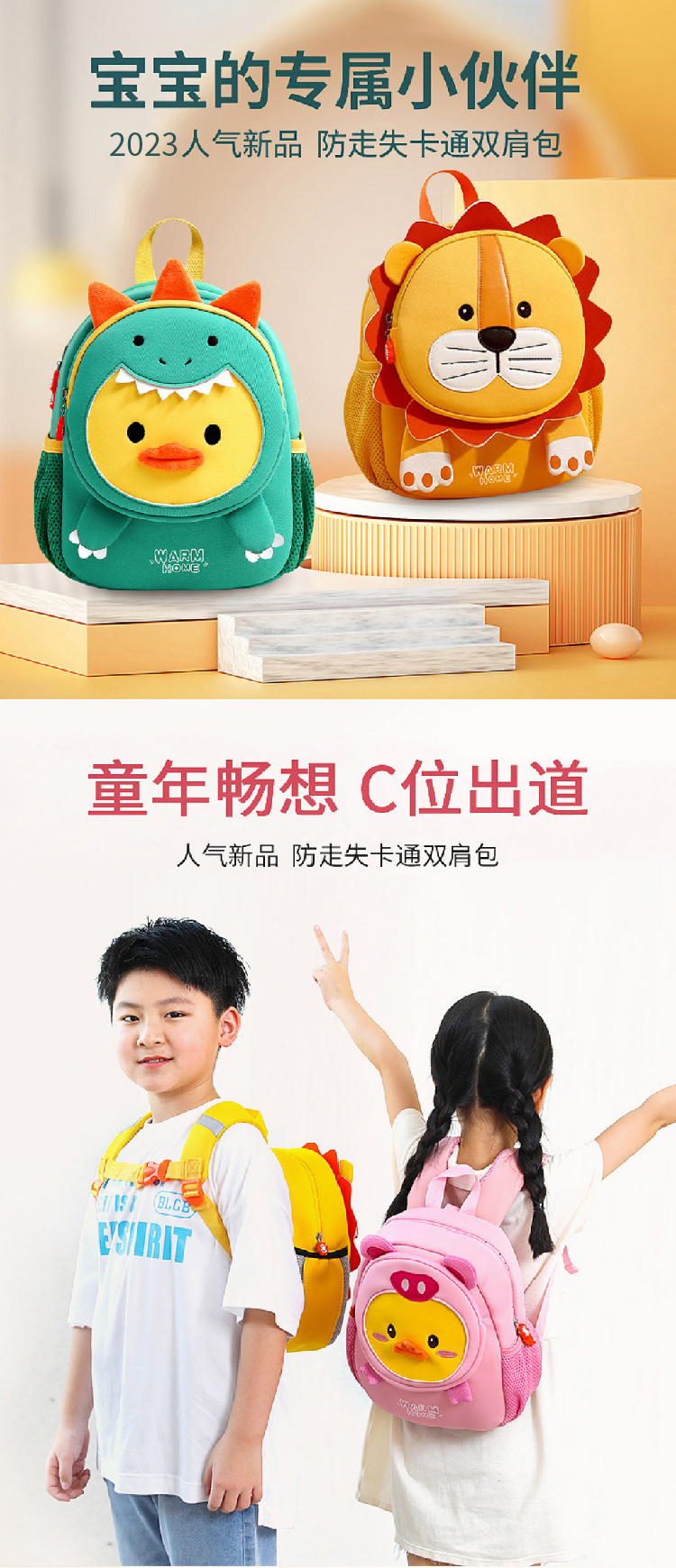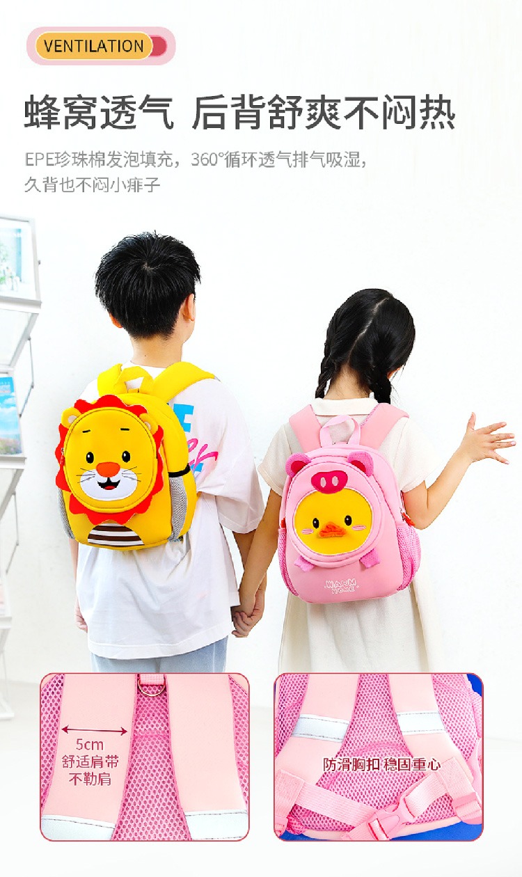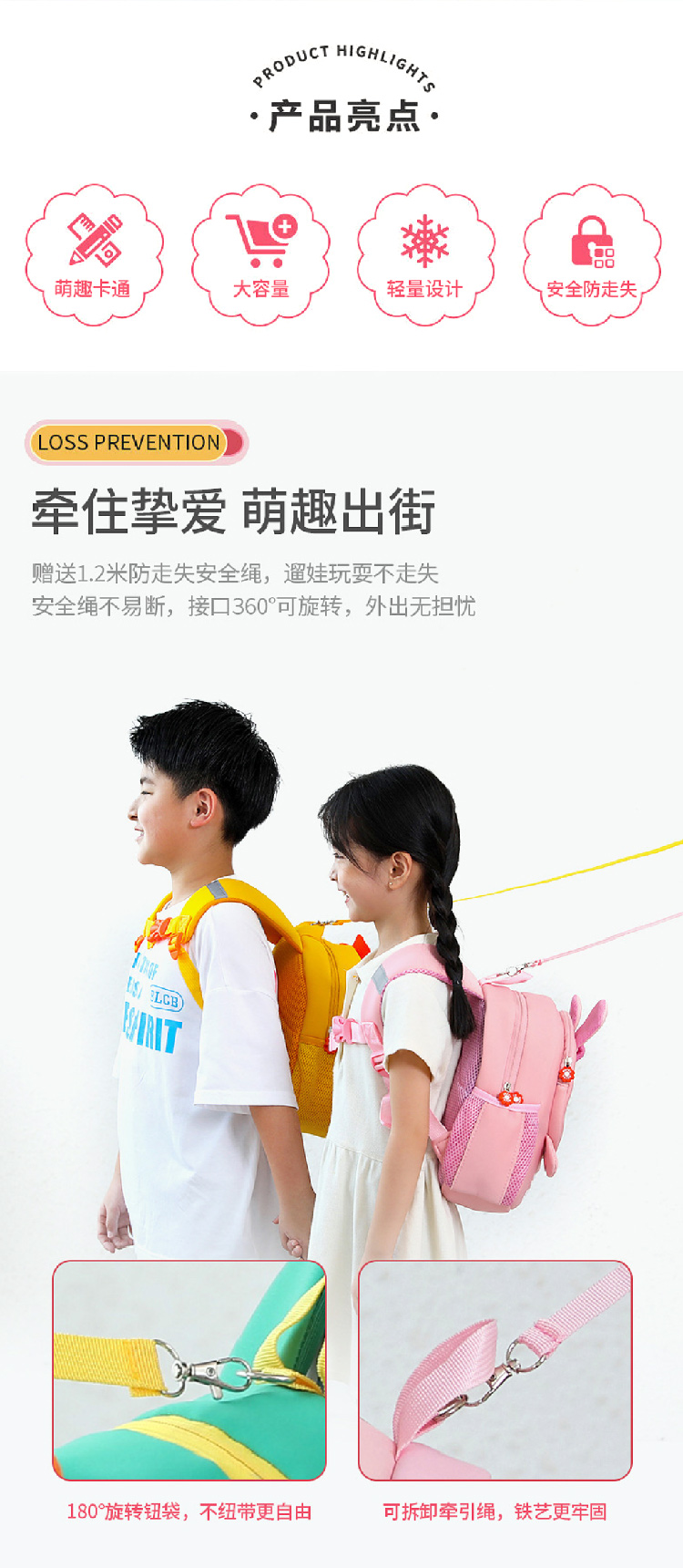 【防走失儿童双肩包】新款幼儿园男女孩双肩反光条包包 卡通可爱动物狮子背包开学礼物小书包