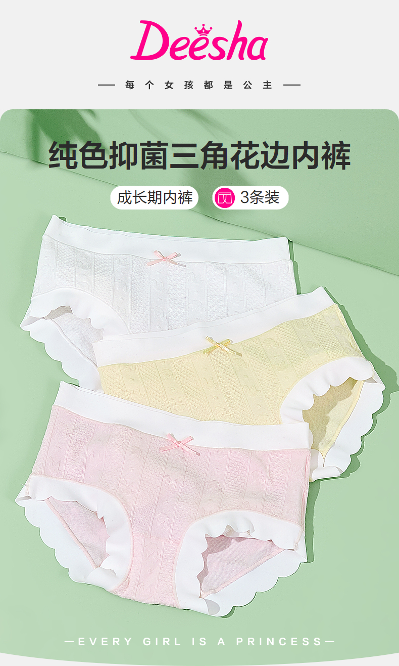 笛莎童装女童小内裤2023年夏季新款儿童纯色抑菌三角花边裤组合装