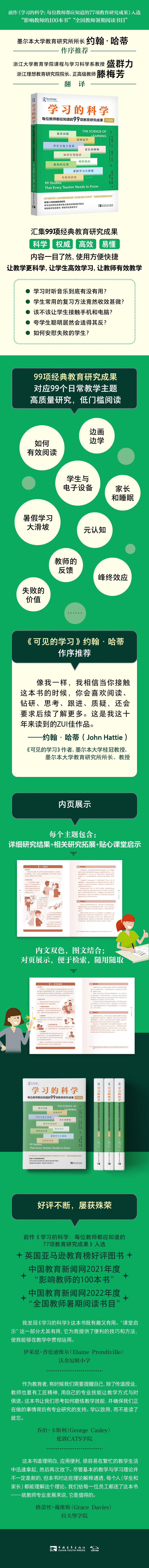 为了使教师能高效地帮助学生学习,《学习的科学(升级版)》新增了22项新研究,将99项关于学习的重要且具影响力的研究转化为通俗易懂的便览,涵盖了认知负荷理论、幸福感和在考试压力下表现良好等关键问题。