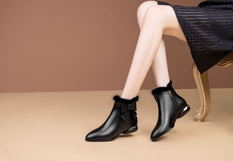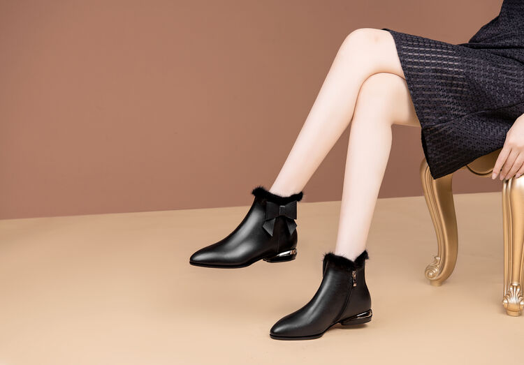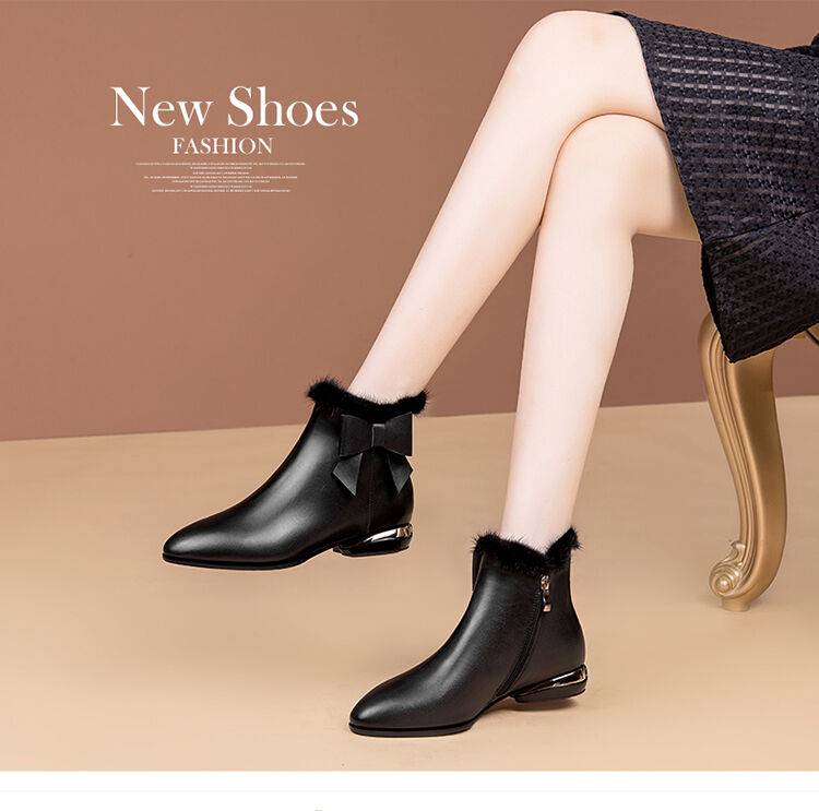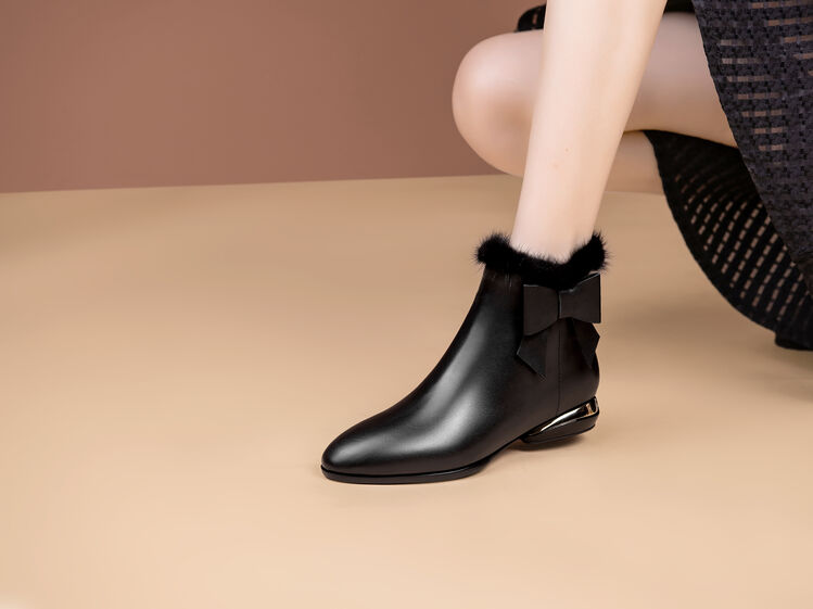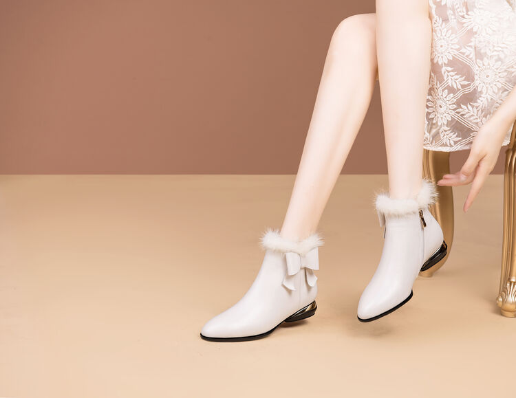 【预售5天】韩版毛毛口时装靴女秋冬季新款低跟加绒时尚短靴DS&1277-6