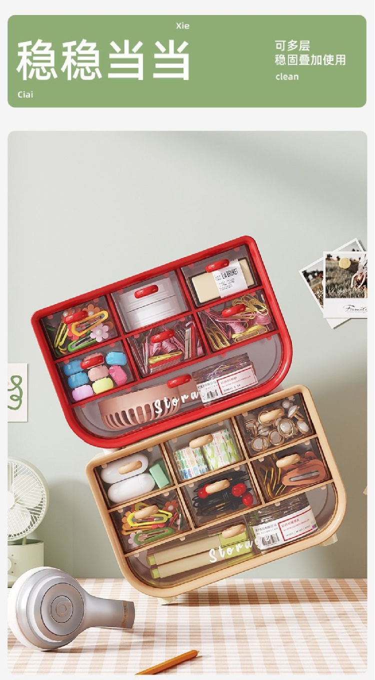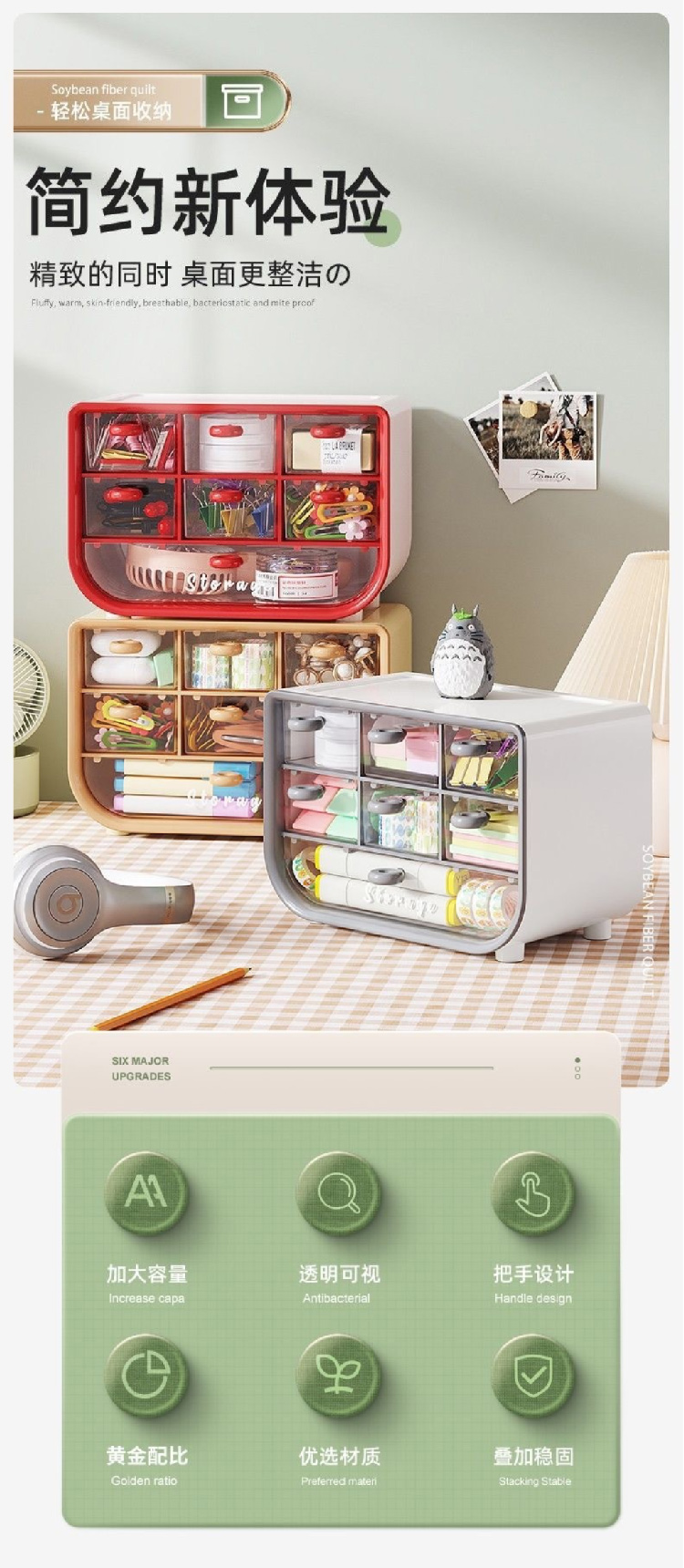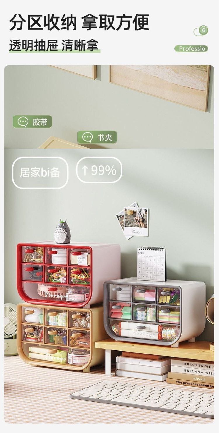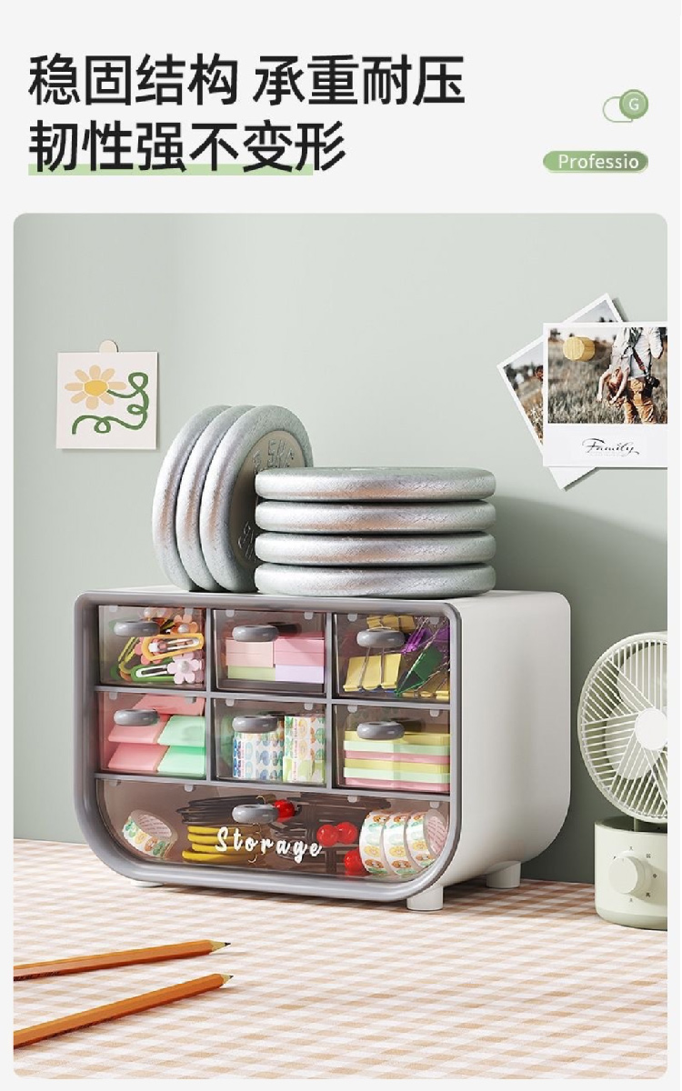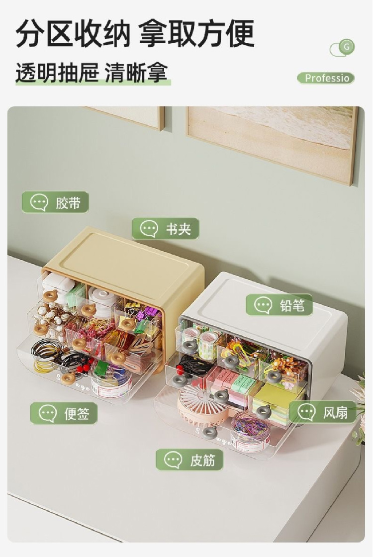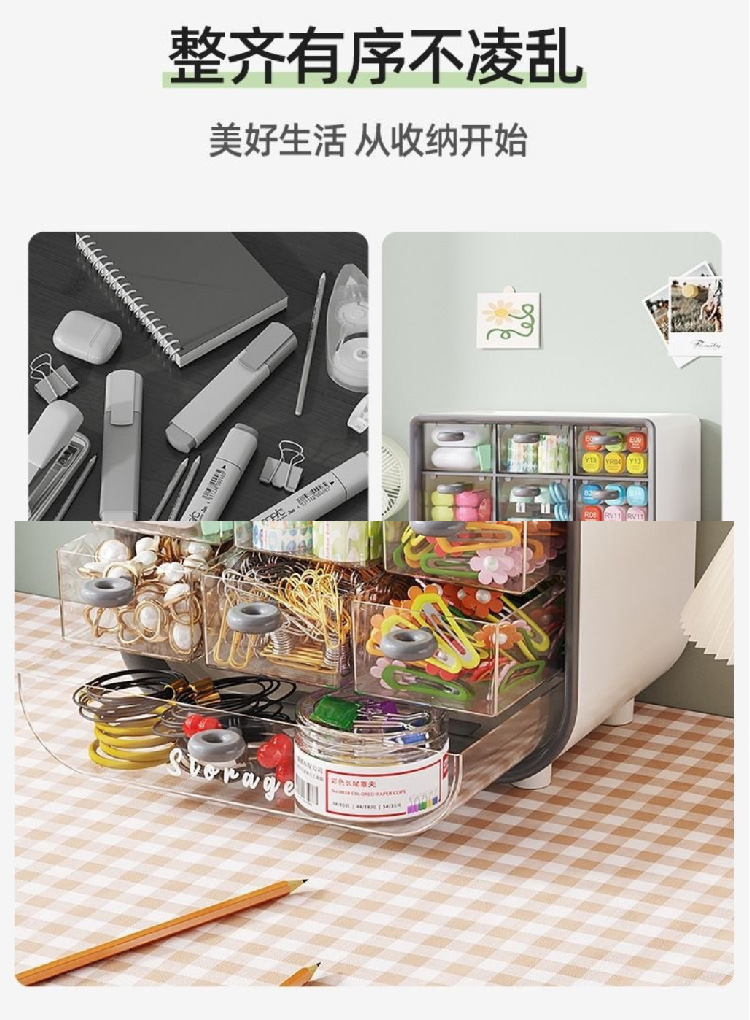 桌面7格抽屉收纳盒多功能桌面整理盒杂物首饰透明盒学生文具笔筒