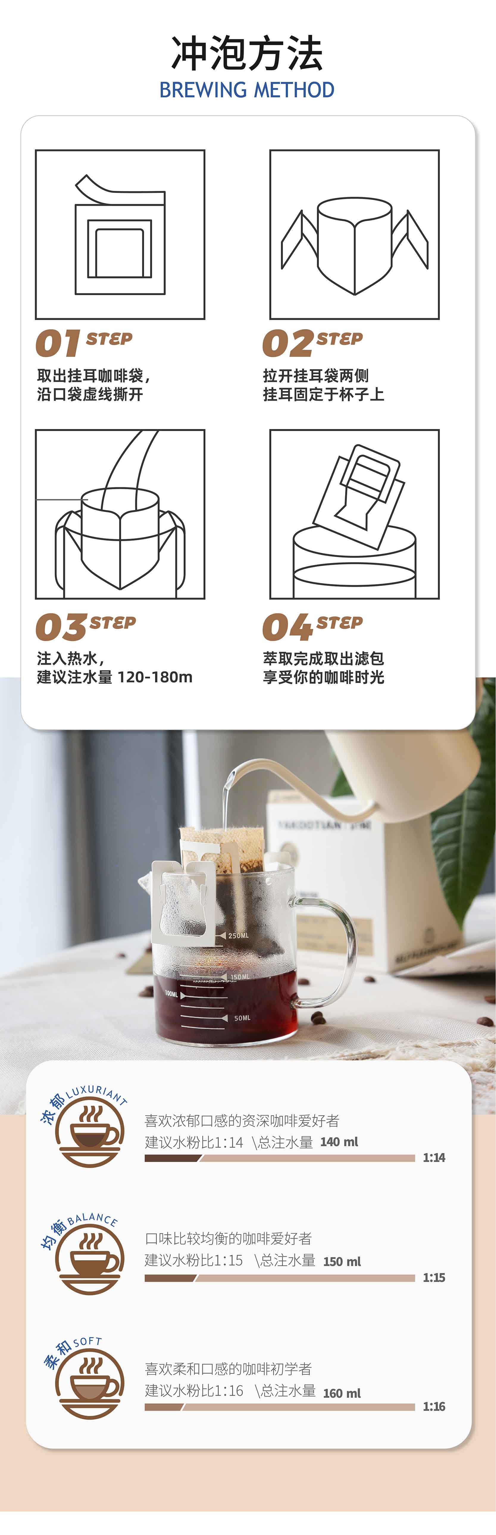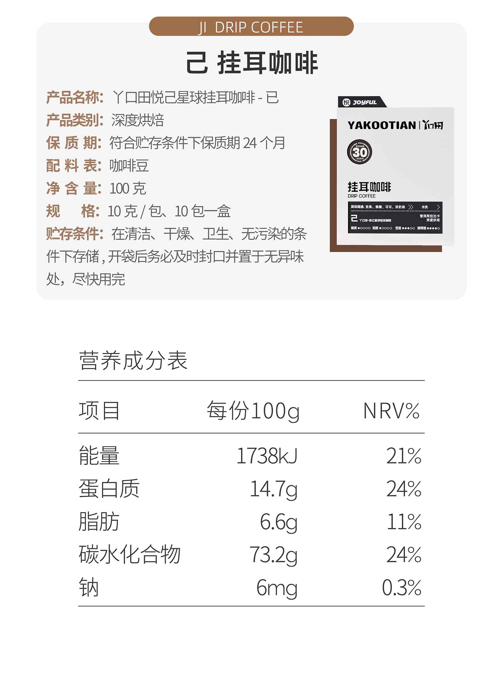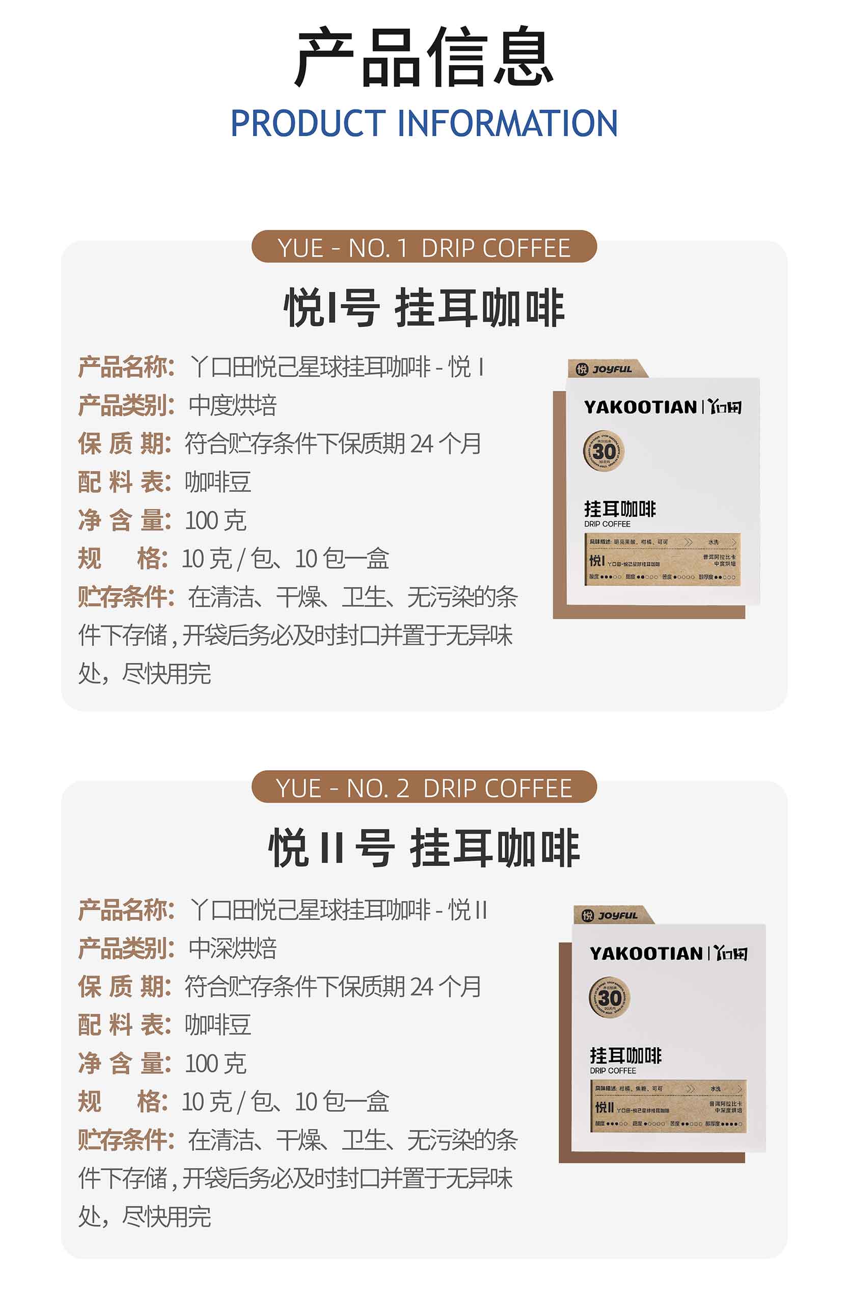 丫口田云南纯阿拉比卡豆挂耳黑咖啡(10包/盒 )