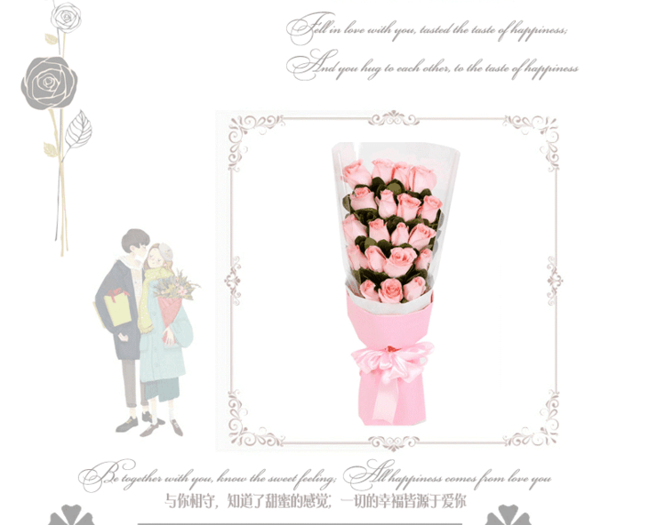 花材:19支戴安娜粉色玫瑰,栀子叶点缀