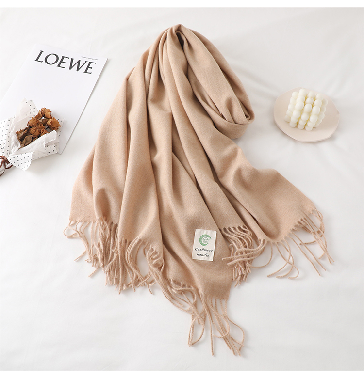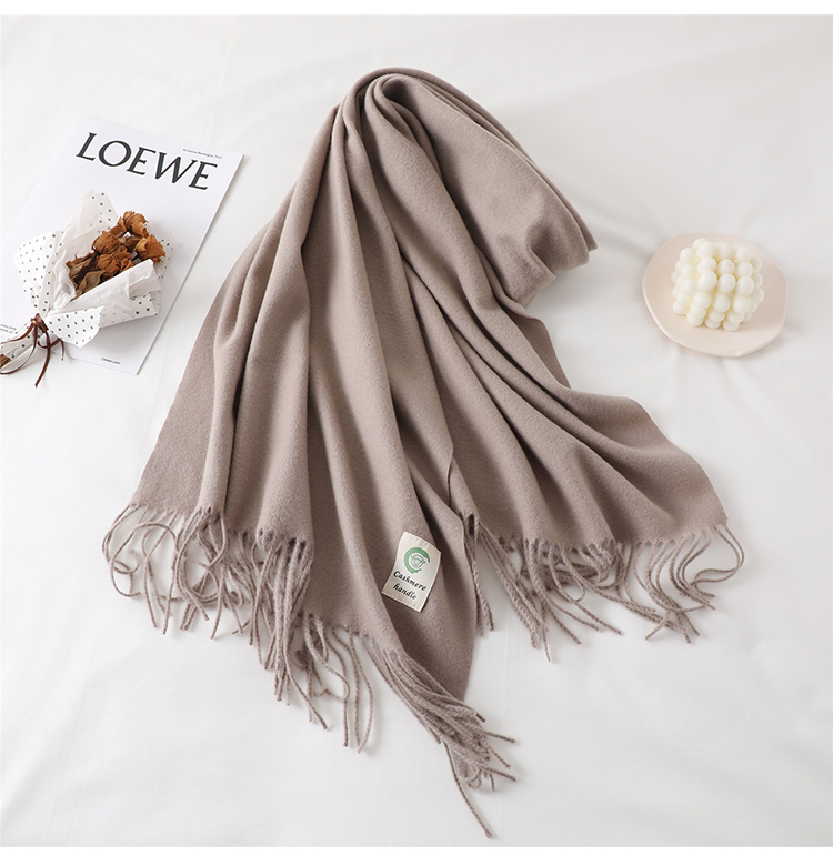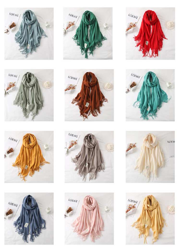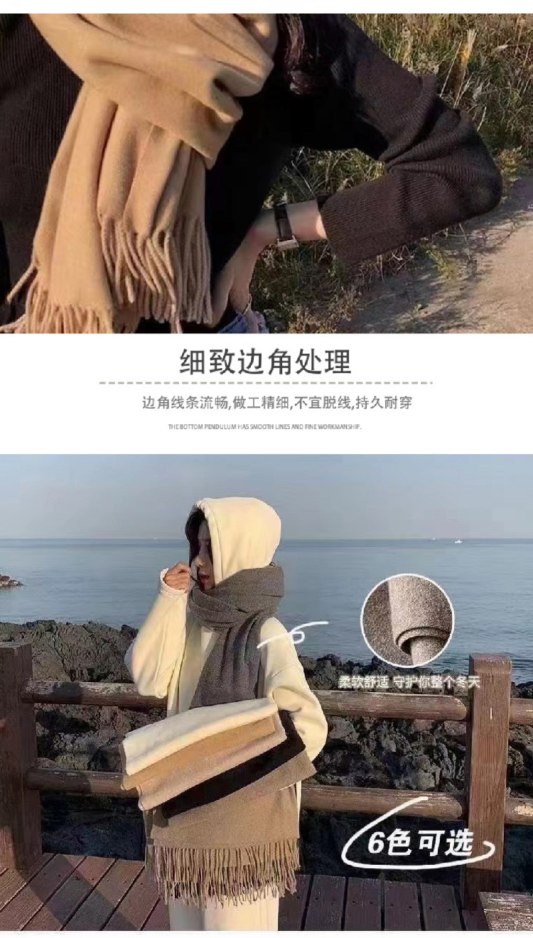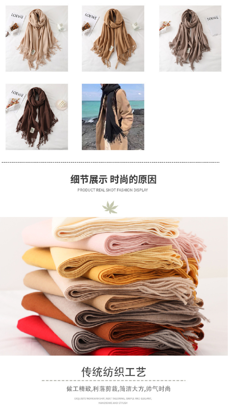 【加厚仿羊绒围巾】秋冬纯色超柔软保暖围巾 韩版披肩单色流苏长短两用围脖15色